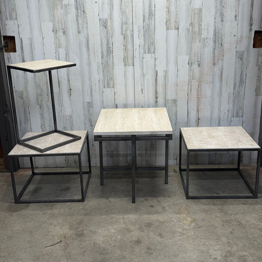 Set Of 2 Live Edge & Wrought Iron End Tables