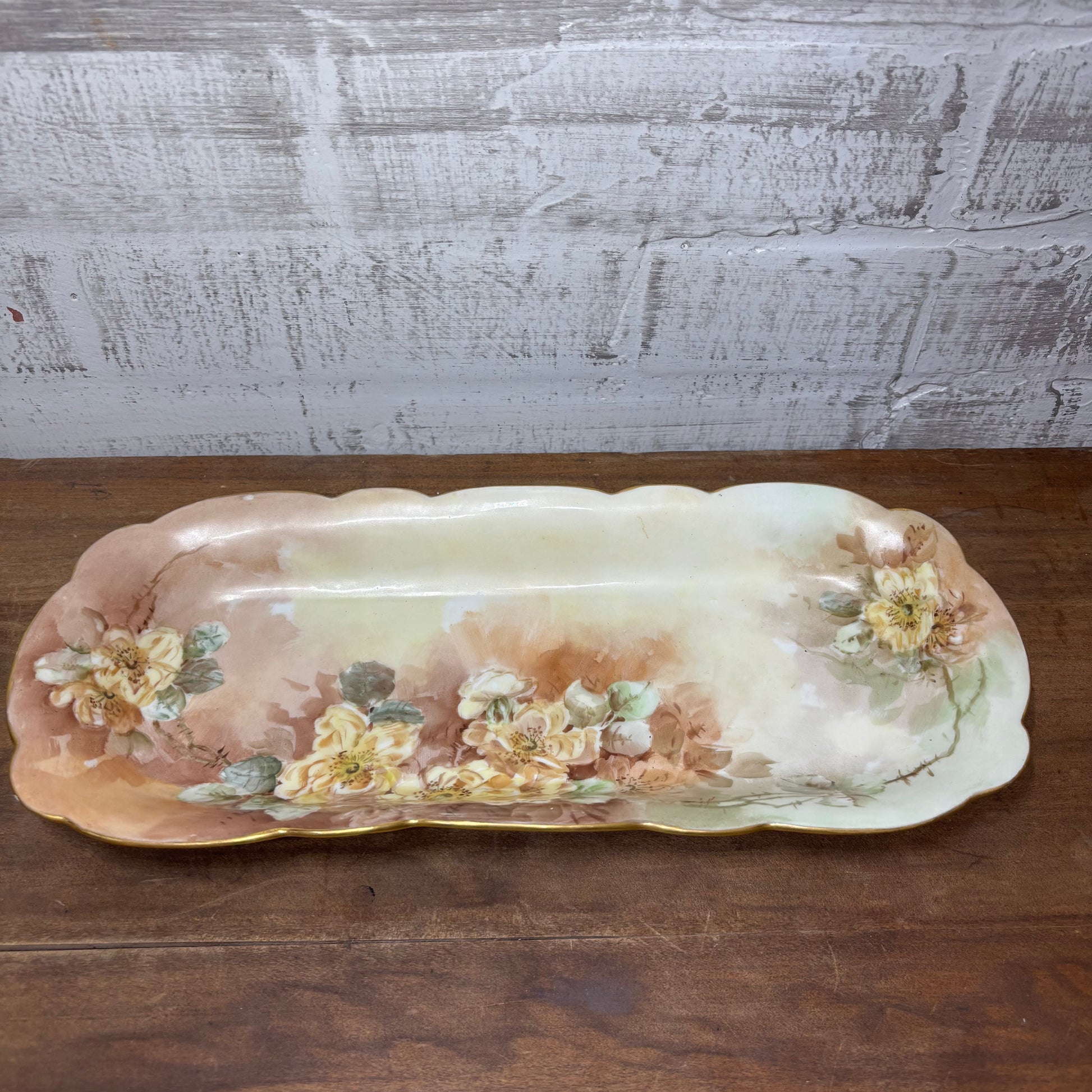 Antique Limoges France Hand-Painted Porcelain Celery Dish