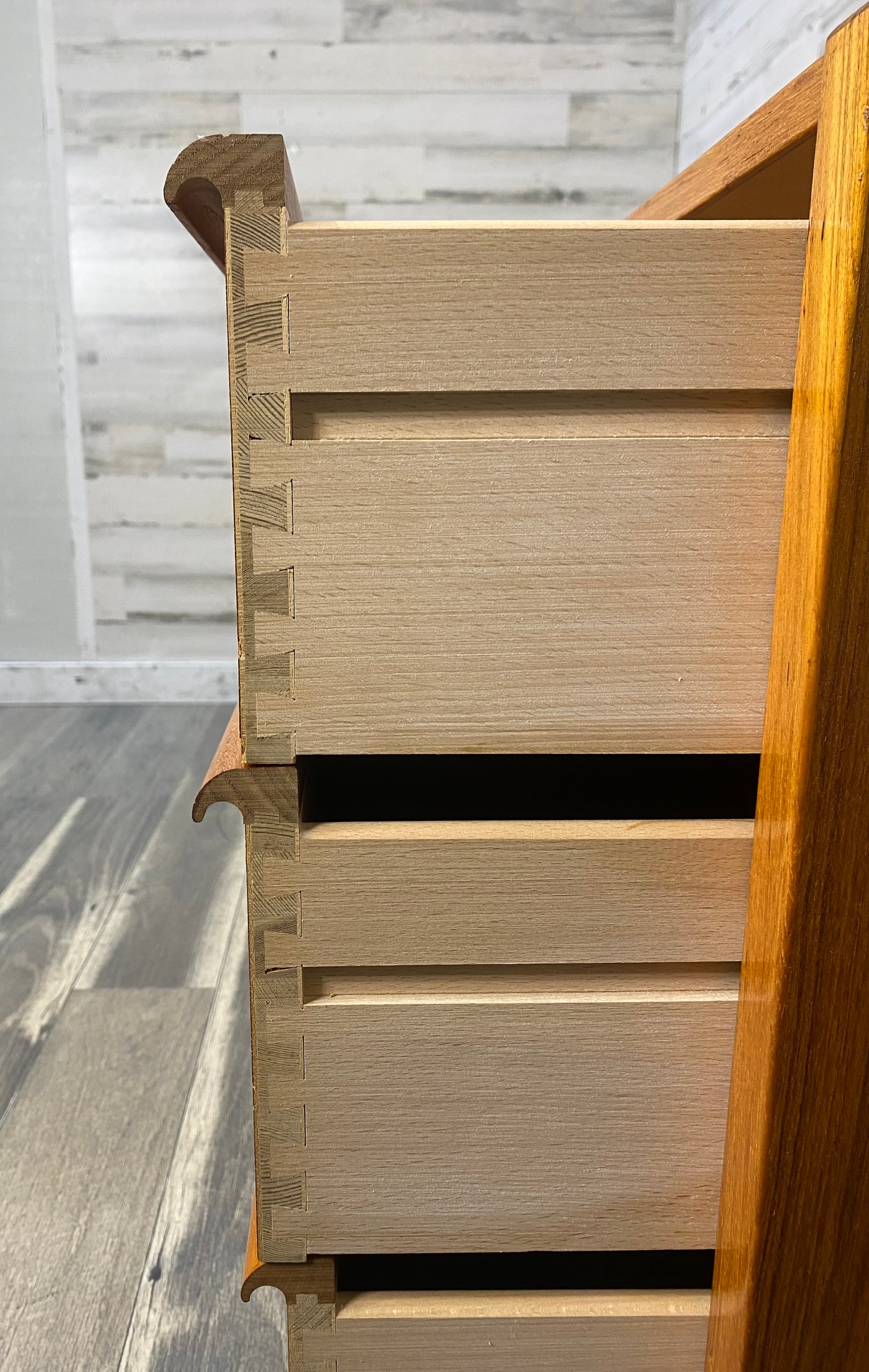Mid century modern 2pc dresser set. Beautiful Danish teak with only a couple minor dings in the wood - see pics. All drawers are dovetailed and work properly. Great pre owned condition. Jasper brand name.