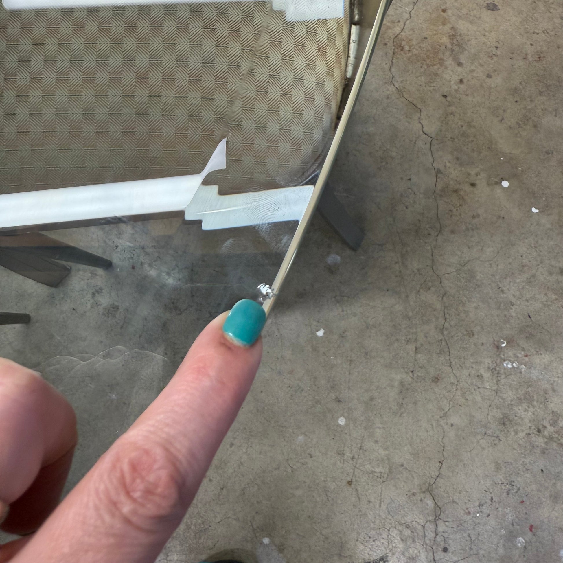 Ethan Allen “radius” dining set. Glass top round table, metal base and 4 metal chairs. Seats are cushioned. Excellent condition. 1 very very small nick on the glass. See pic.