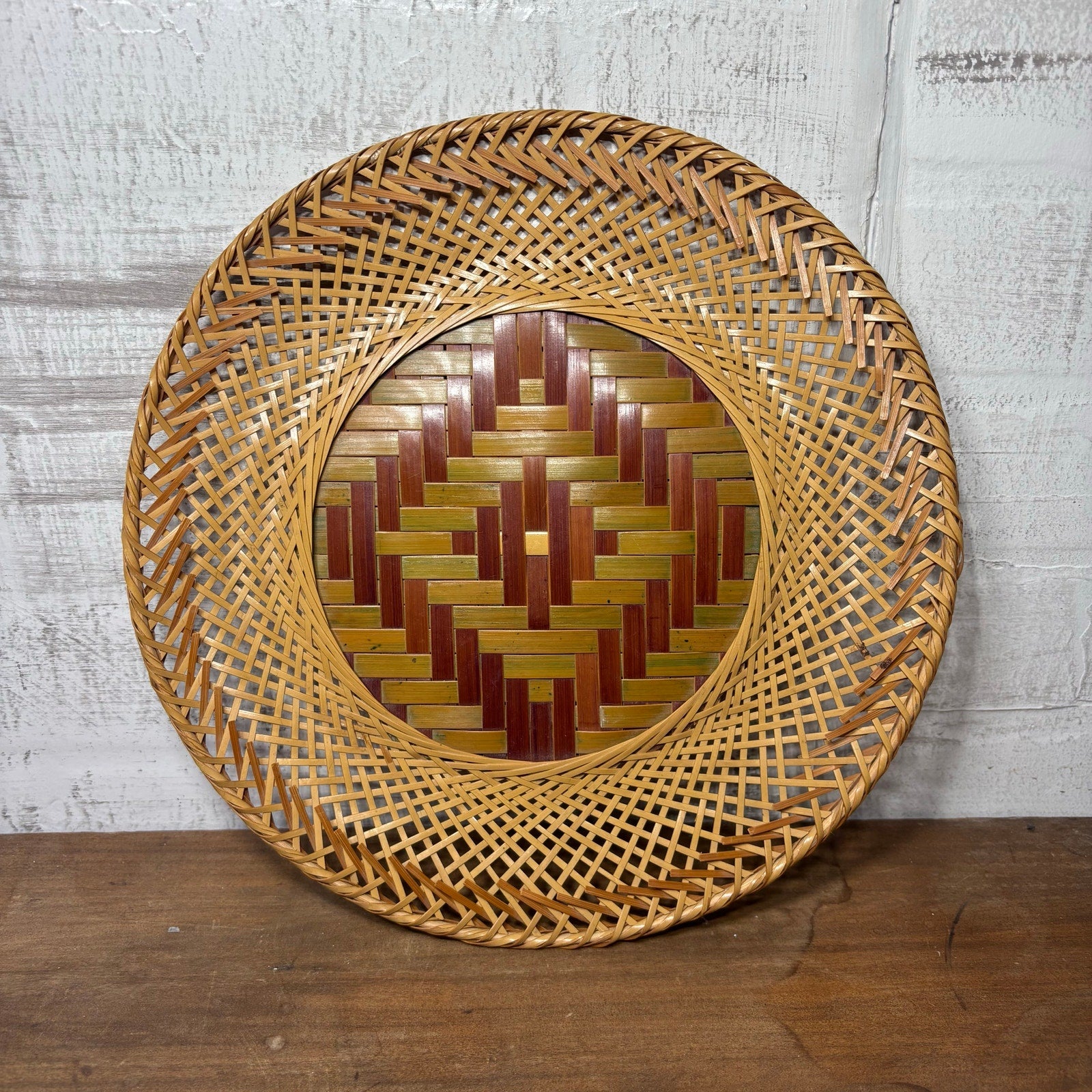 Made in Japan hand woven wicker rattan wall decor, 11” diameter