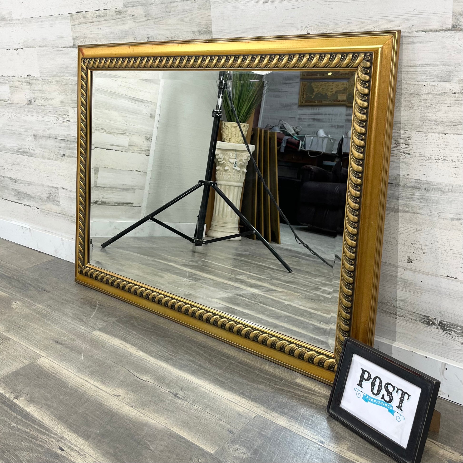Large gold wood frame mirror. Excellent condition, maybe a couple scratches in the wood but add to the antique style. Very well built and great quality.