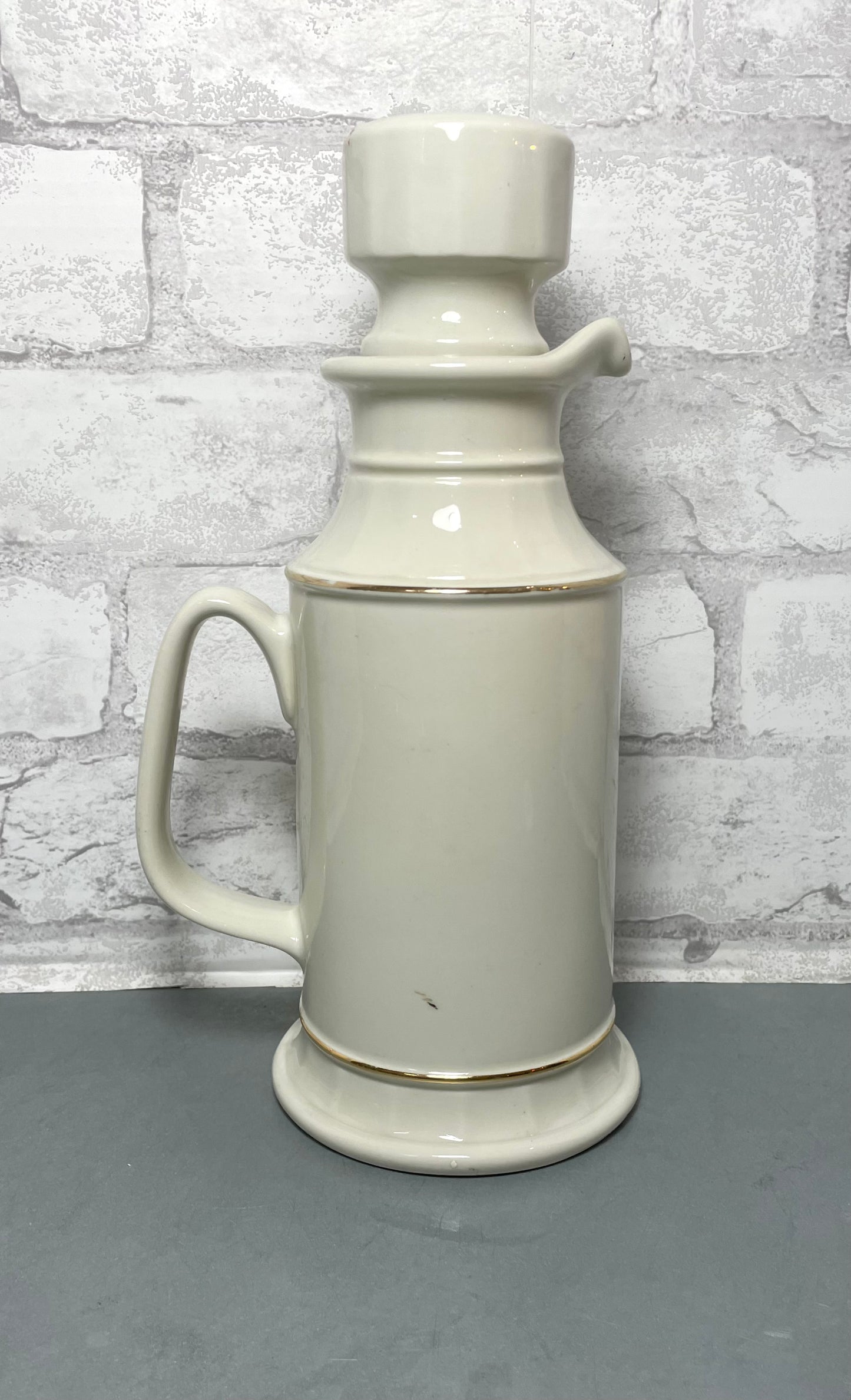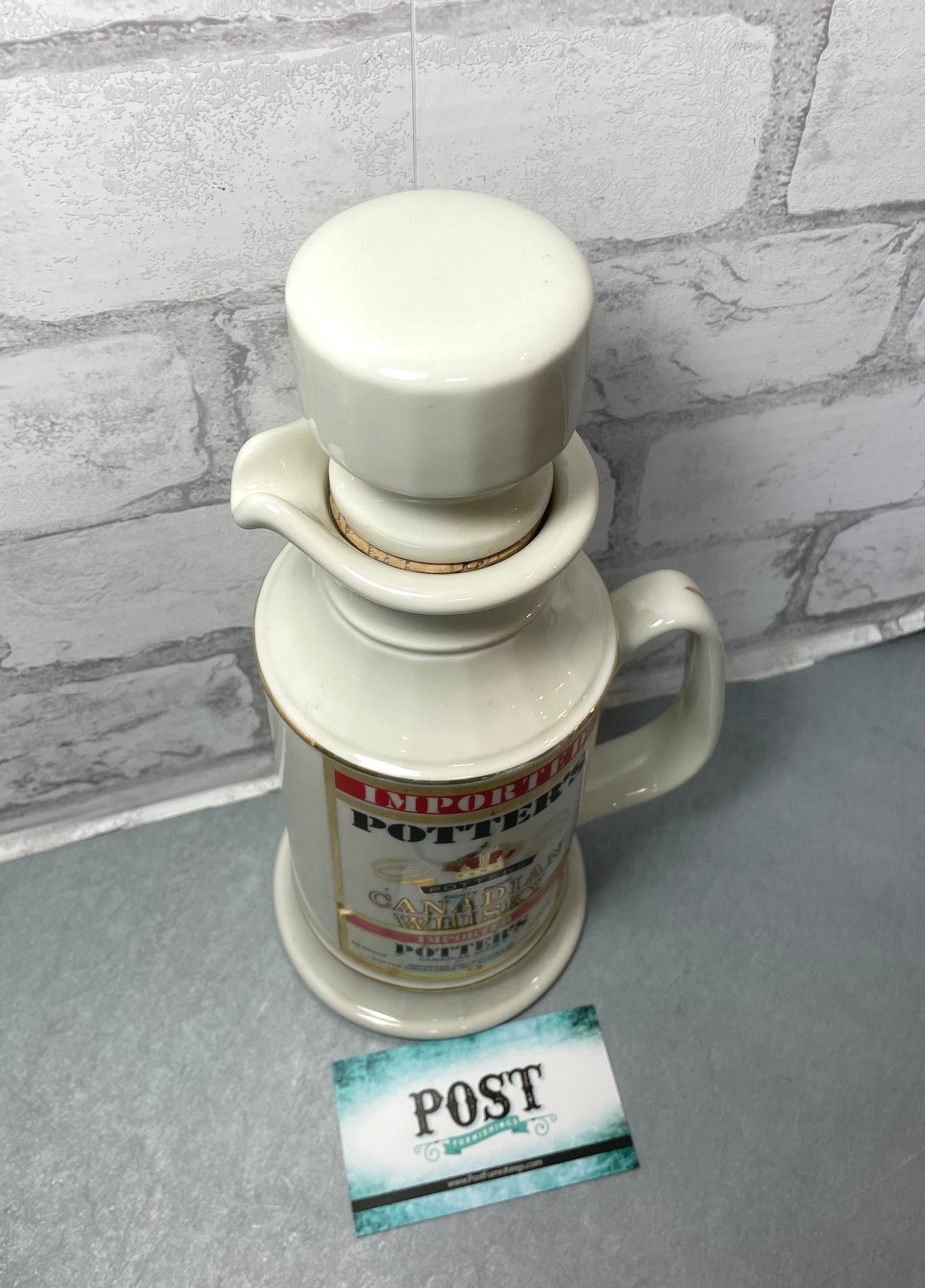 This Potter's Canadian Whiskey bottle decanter is a unique and collectible piece that combines the world of pottery and whiskey. Crafted with precision and attention to detail, it showcases a distinctive design that pays homage to the rich heritage of Canadian whiskey.