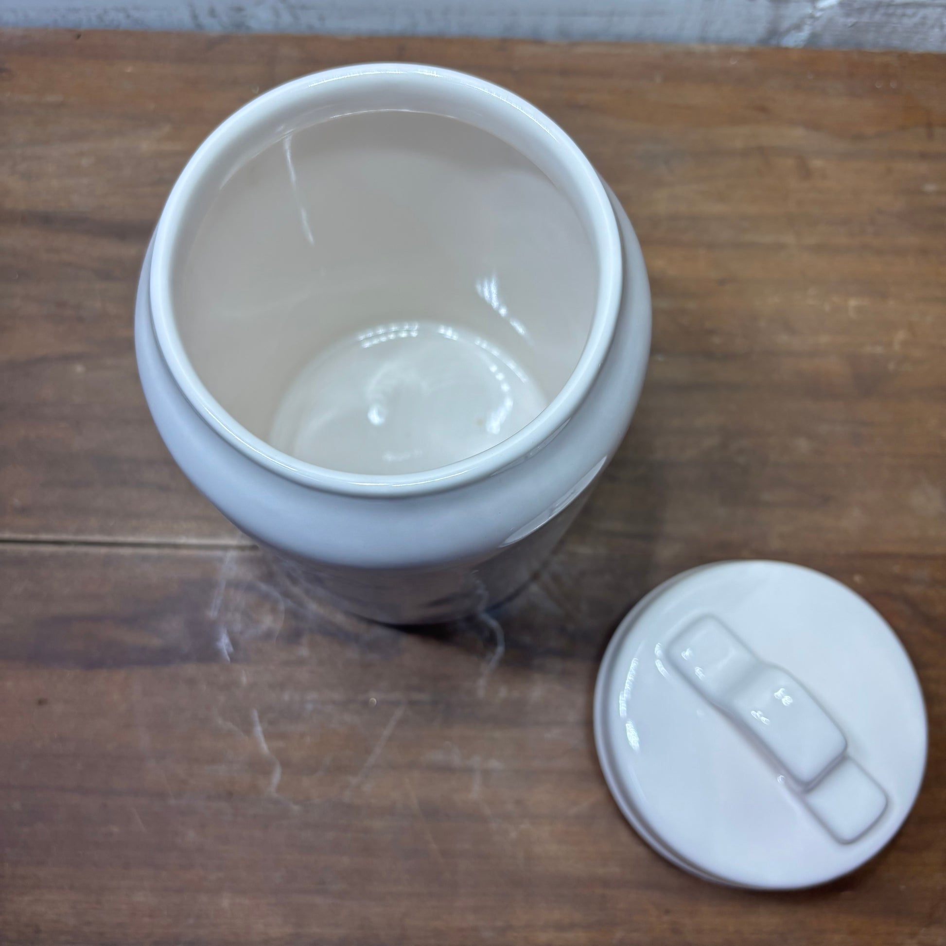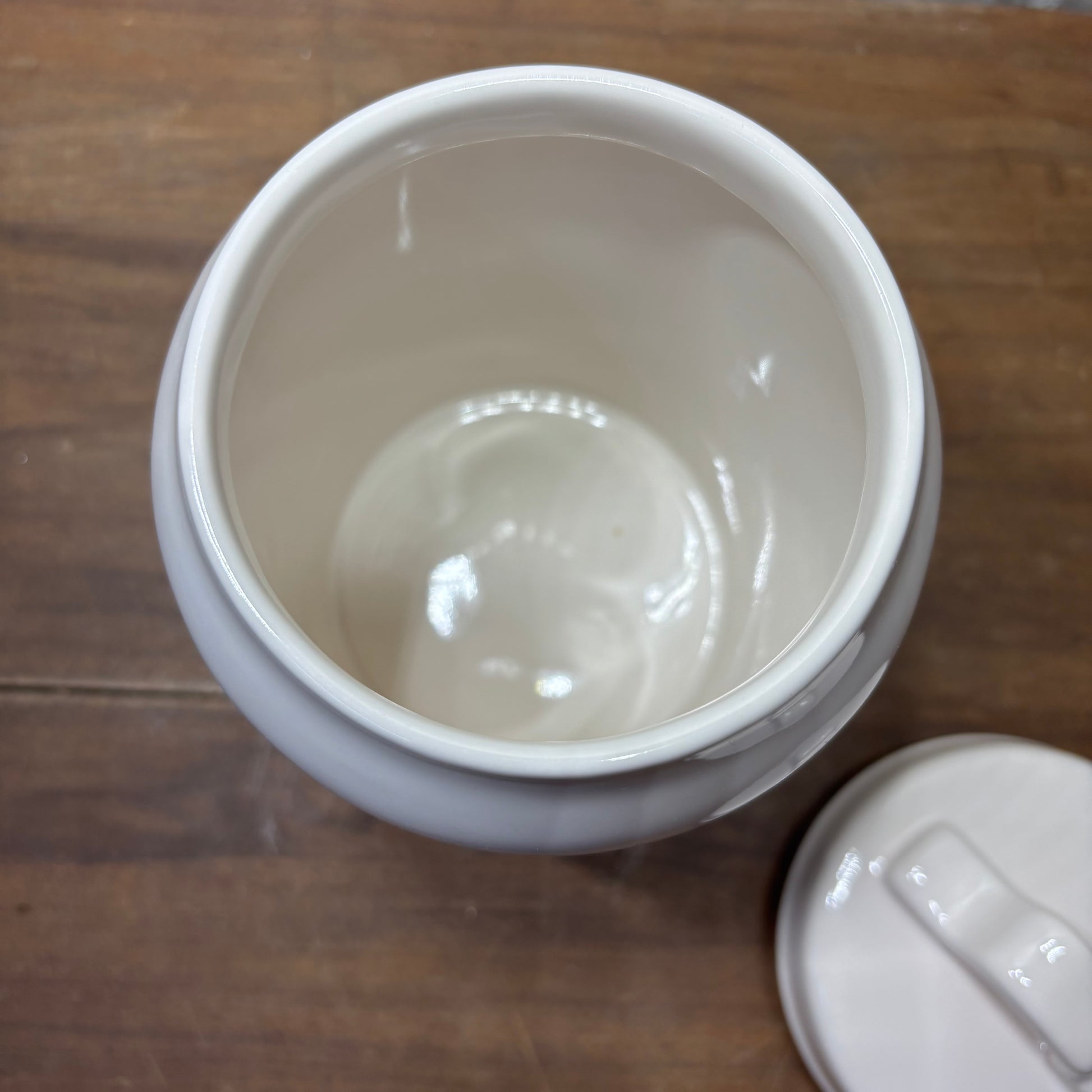 Rae Dunn artisan ice cream collection by magenta, “Two Scoops” ceramic canister, 8” tall with lid, 6” tall without lid, 3.5” wide