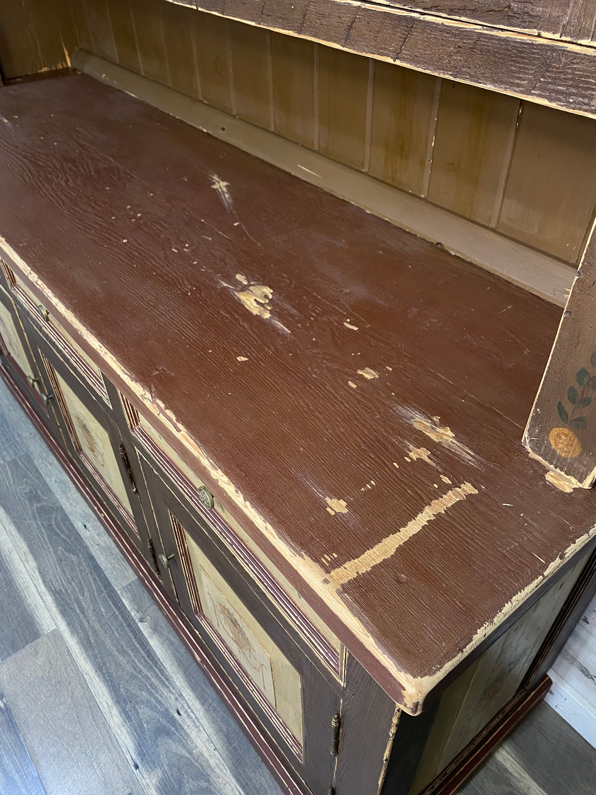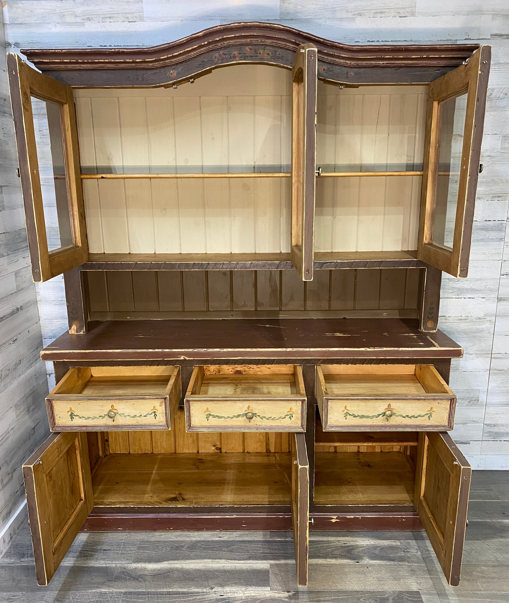 Very large China hutch! Just arrived from Europe. Rustic, chippy, and perfectly blemished! So much character in this piece. Solid wood, very heavy with lots of storage space!