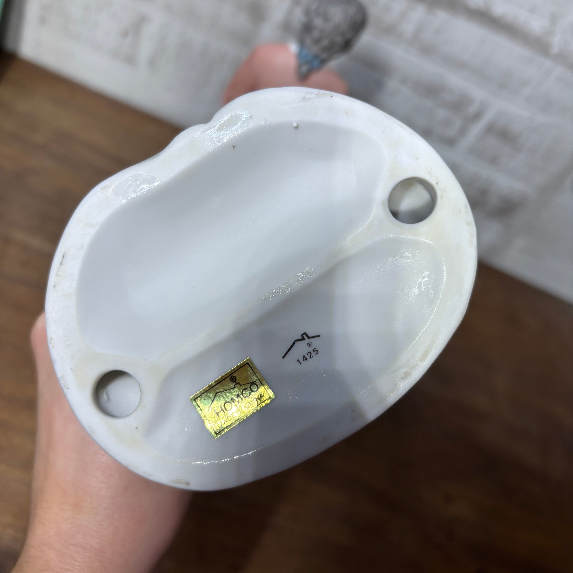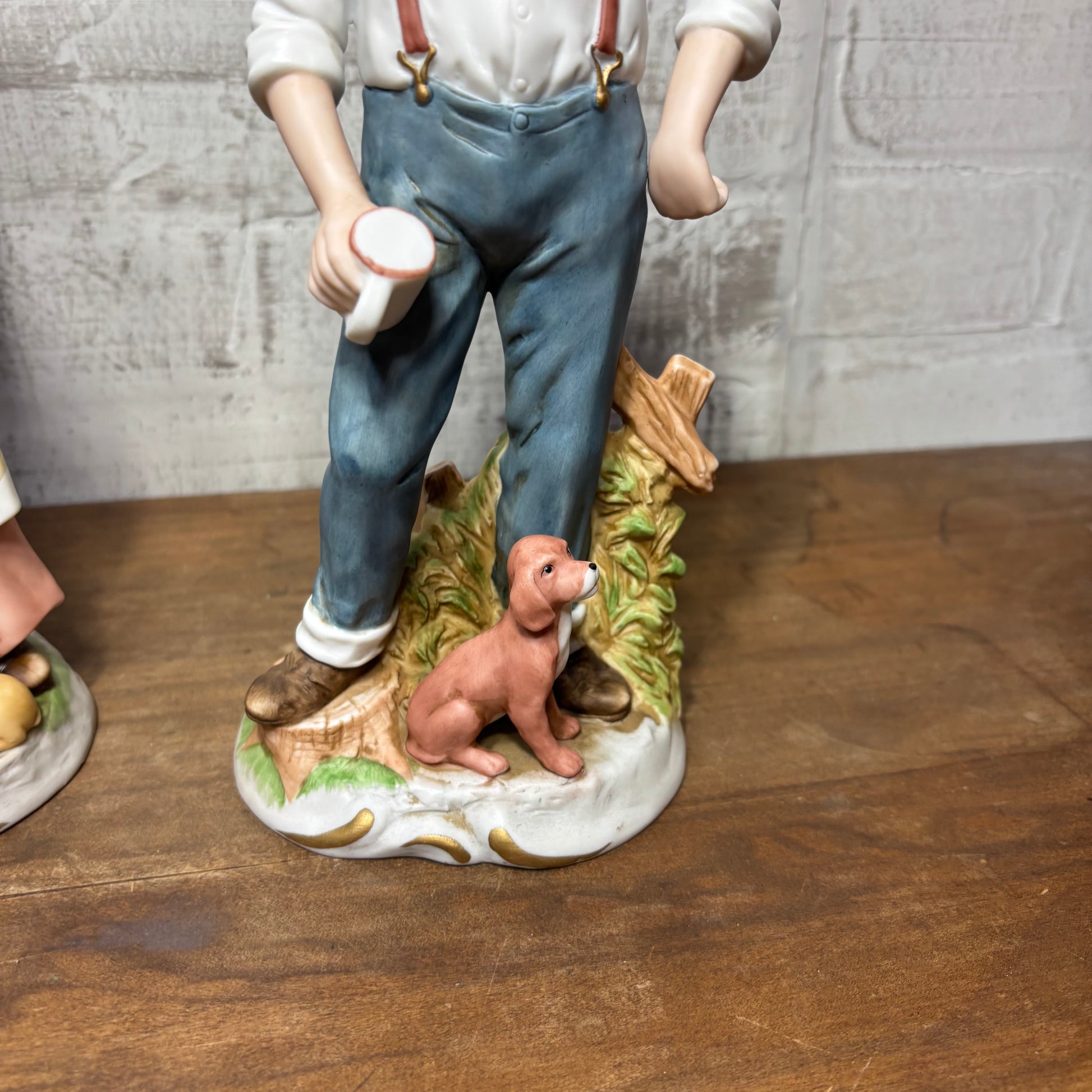 Made by the brand Homco, number #1425 vintage porcelain elderly couple with dog set of two figurines, great condition no chips or cracks, 10” tall, 4” wide