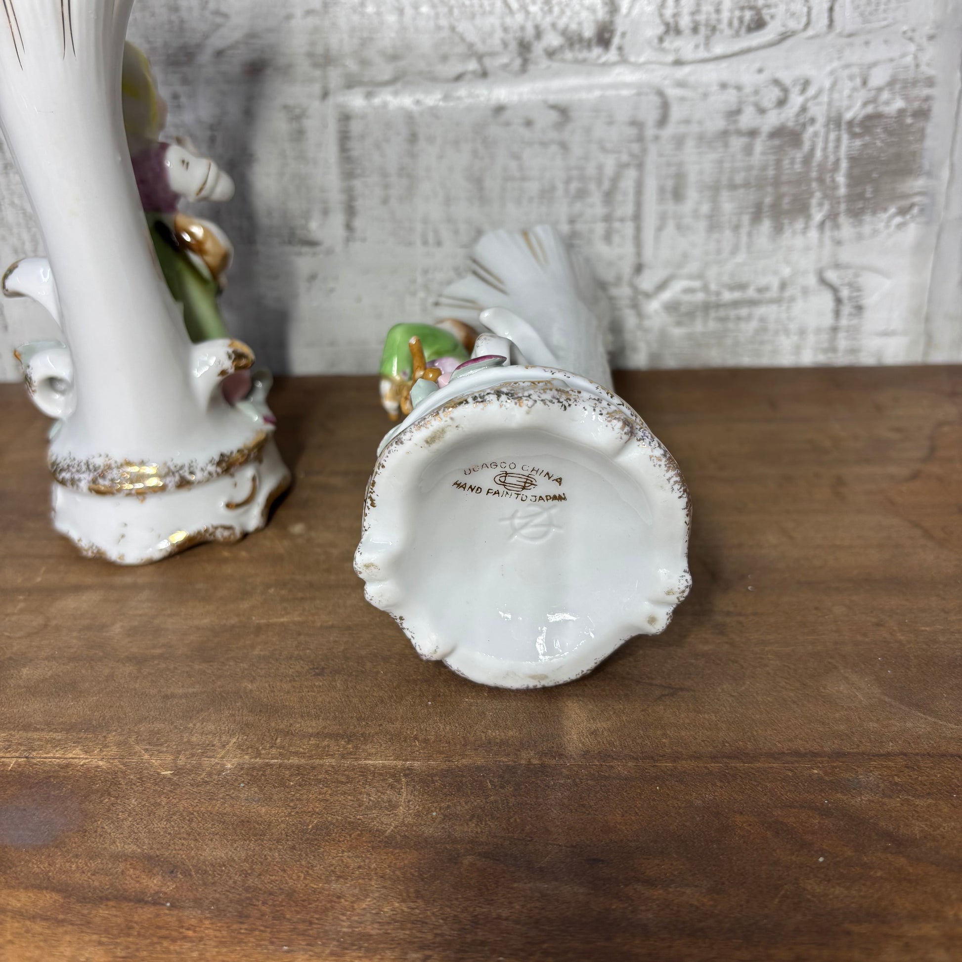 Ucagco China Hand Painted in Japan porcelain Boy & Girl Flower Vase, the girl vase has some staining can be seen in photos, 5.5” tall, 2” wide opening