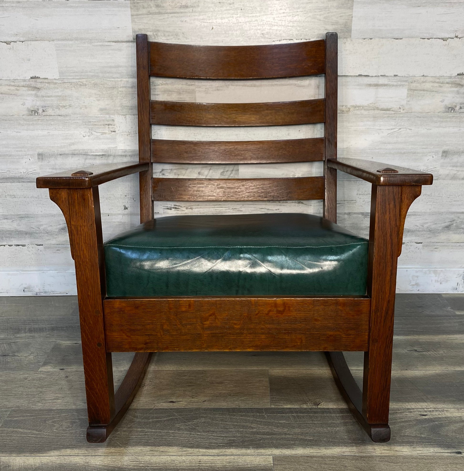 Limbert arts and craft Antique Mission Oak Rocker. Made in America around 1910’s. Excellent condition and very well built. No cracks or rips. Original Limber stamp.