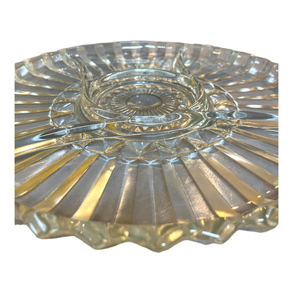 Serve your guests in vintage style with this clear divided serving dish! Crafted from heavy glass, this 5-section dish can hold all your favorite snacks while adding a classic touch to any table. The perfect way to make an impression on your dinner guests!