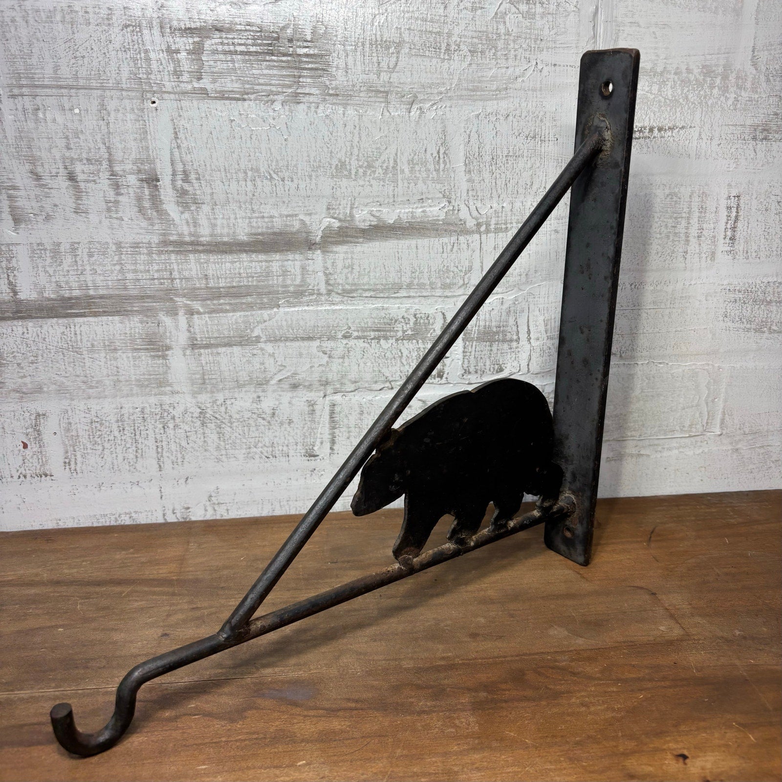 Wrought iron metal bear silhouette basket or plant holder, hang it outdoors or indoors, 13” long, 13.5” wide