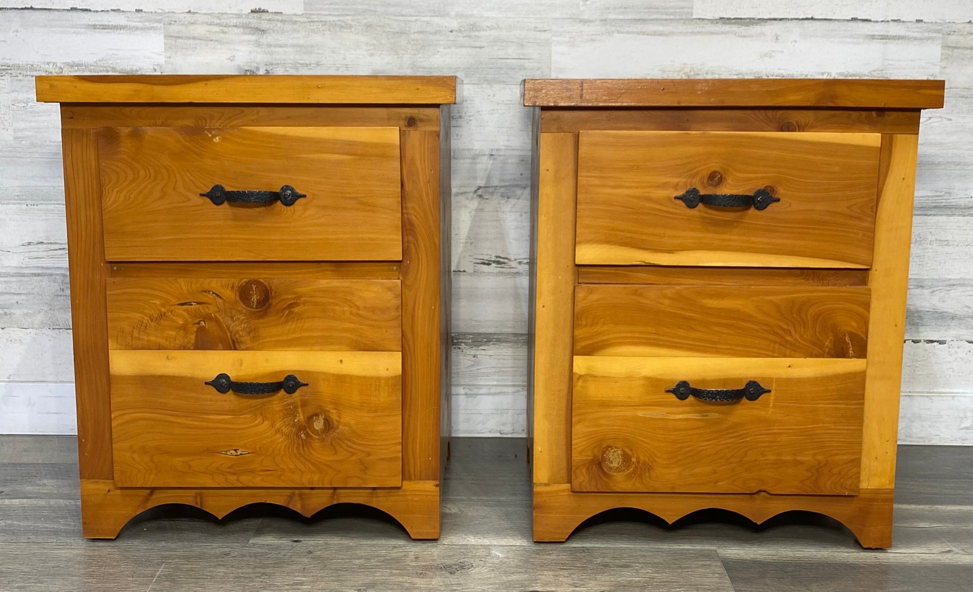 Custom built set of nightstands. Outer shell is beautiful cedar. Rustic cabin vibe style. Excellent condition.