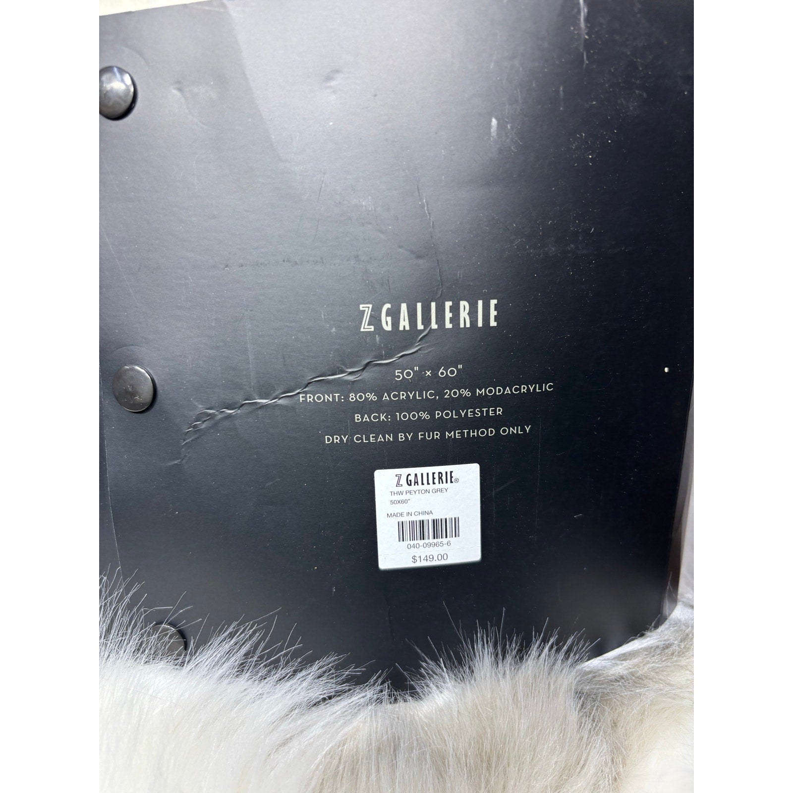 Z Gallerie plush faux-fur on one side, soft white velvet on the other, Made by the brand Payton