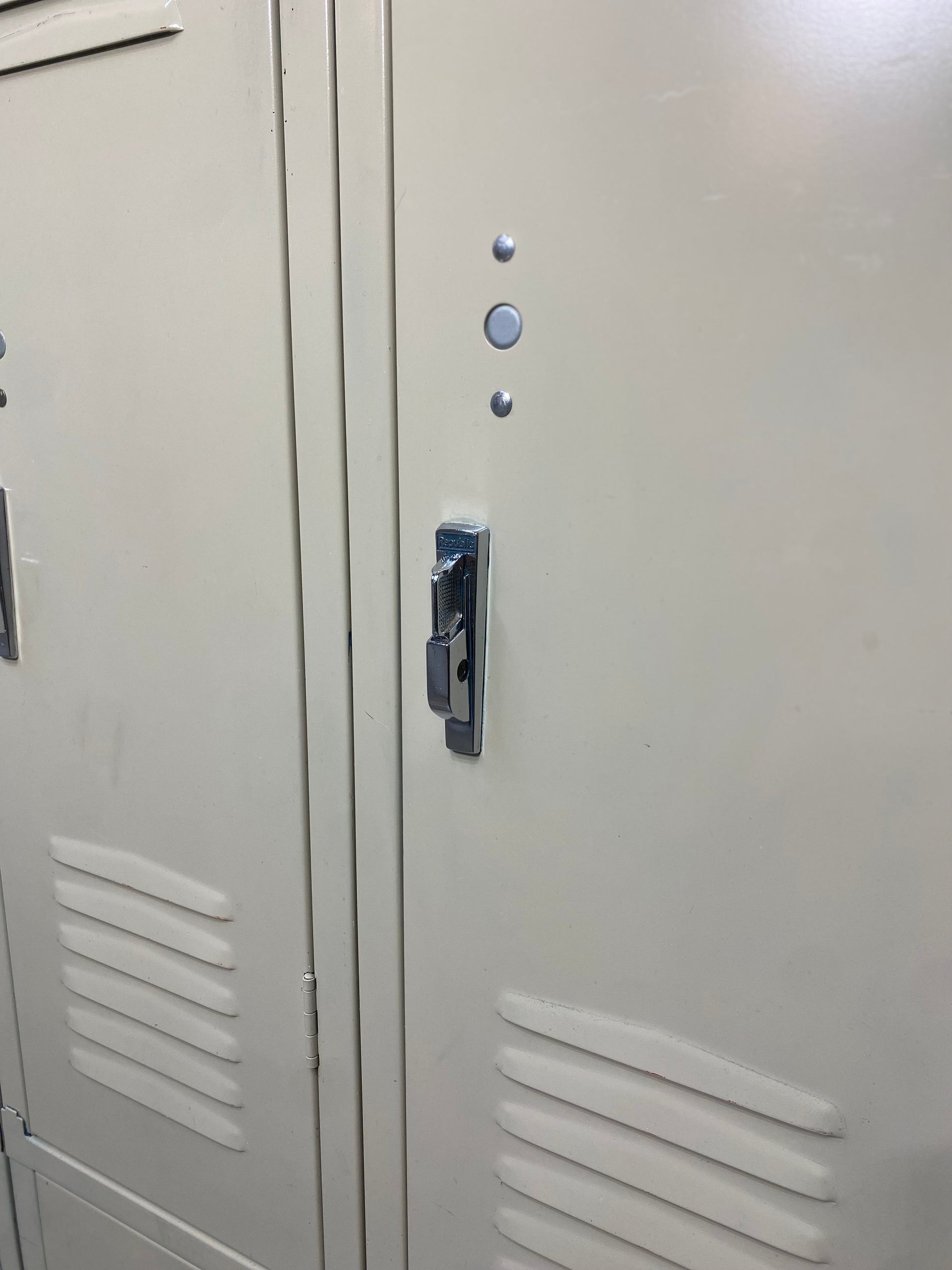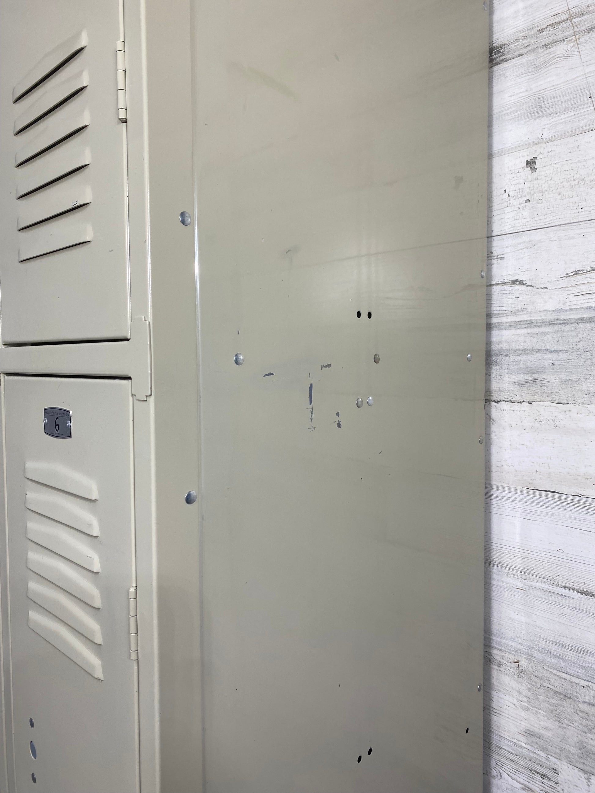 Set of 6 lockers. All are connected together. Good condition with some scratches. All doors open and shut properly and has a hole for a pad lock to be added.