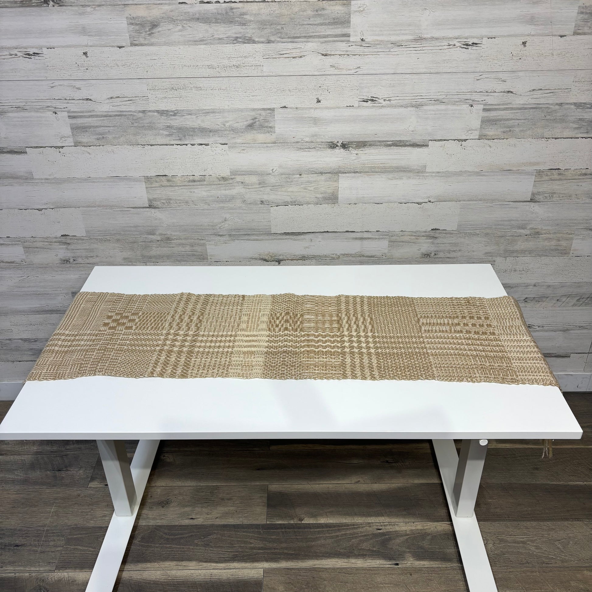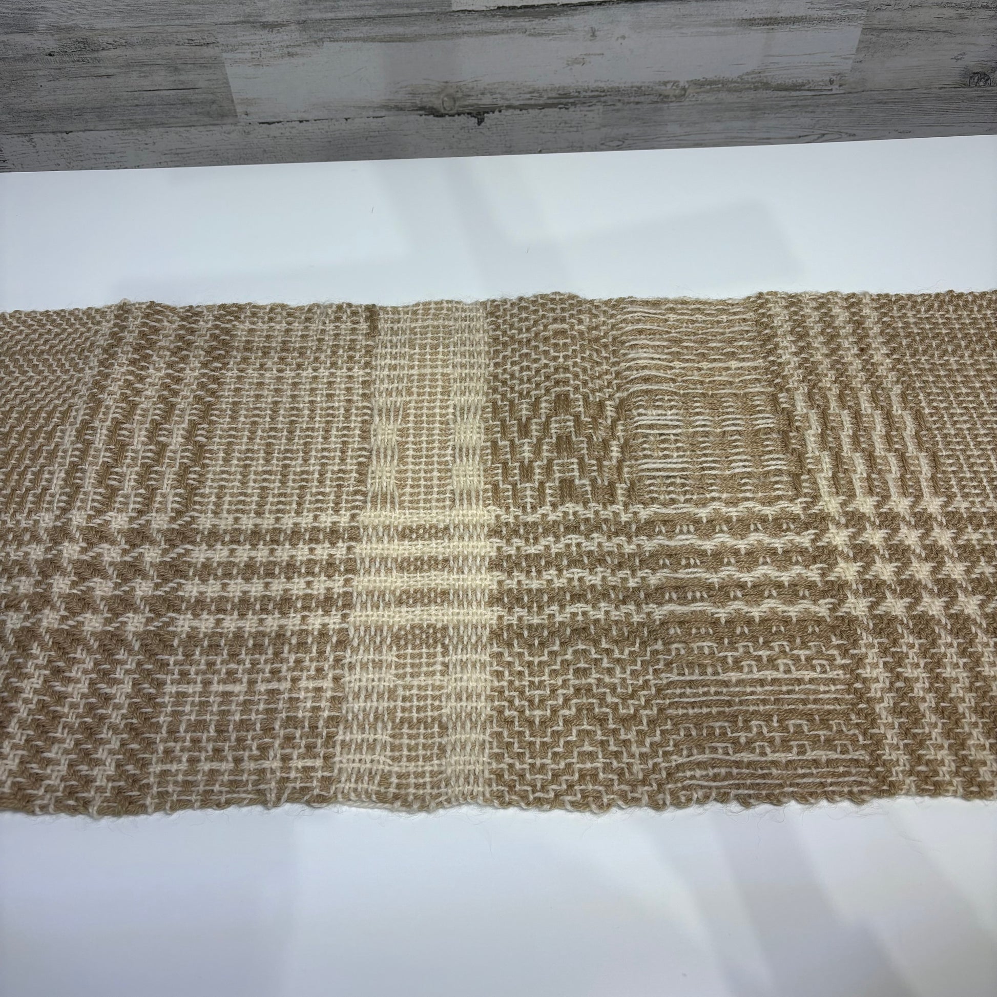 Tan and cream sweater style table runner, entryway/ dining table etc, 52” long, 14” wide