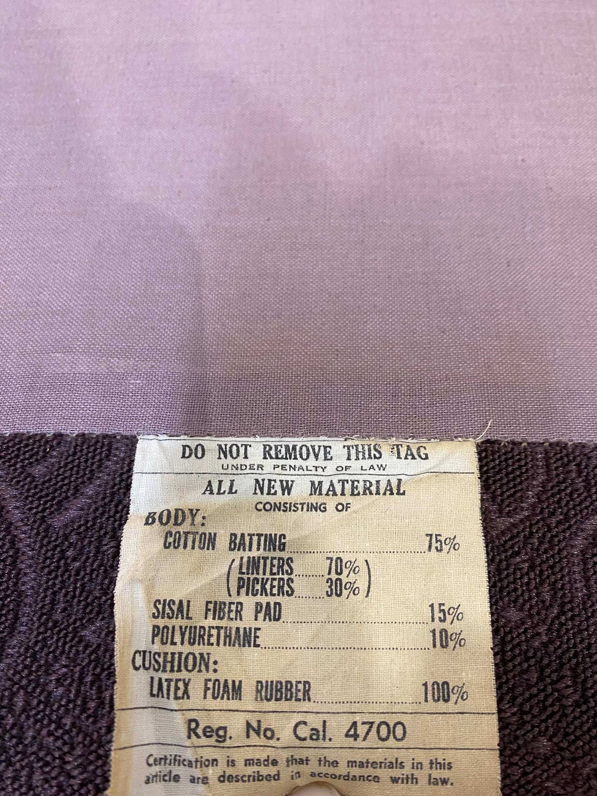 Mid century modern accent slipper chair. Purple/ gray color. Textured fabric with leaf pattern.