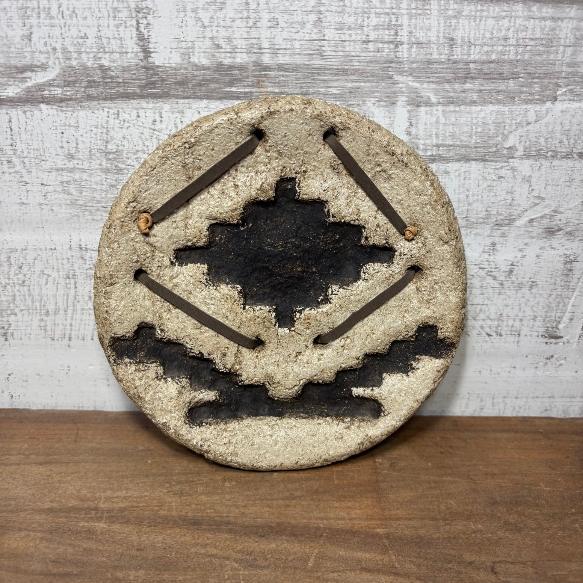 vintage Native American style sand-cast pottery plaque, hang it indoors or outdoors, 7” diameter