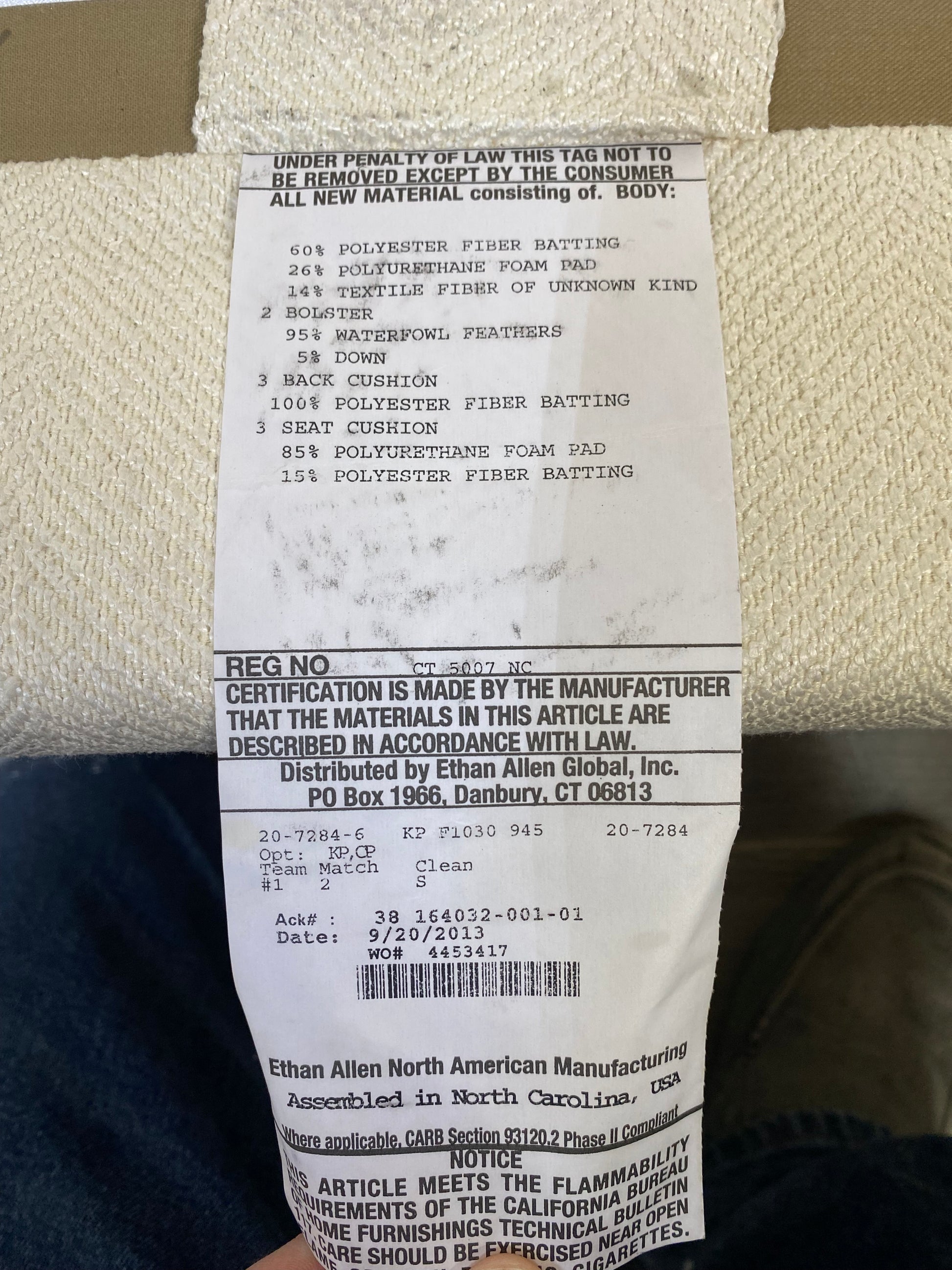 Ethan Allen Cream White Couch