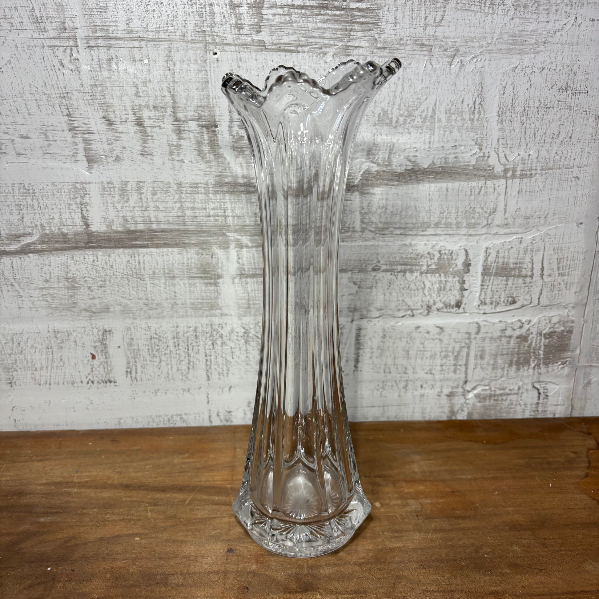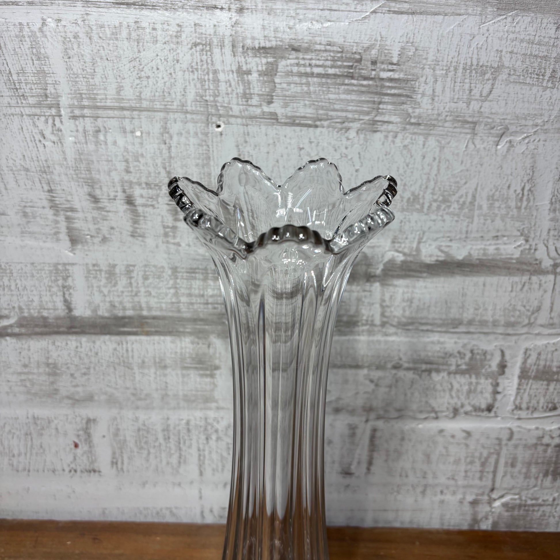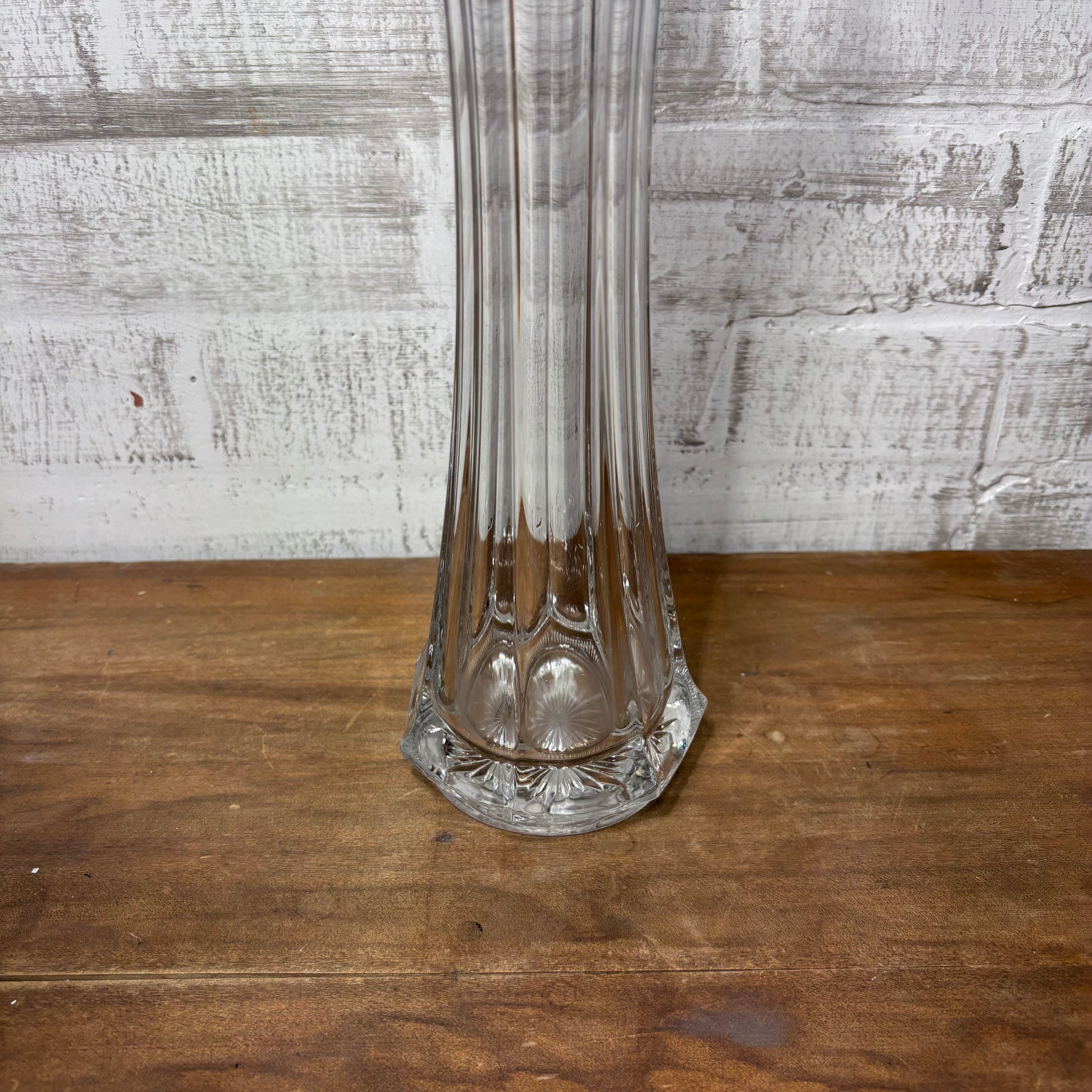 Tall mid century modern style fluted glass vase, 12” tall, 3.5” wide