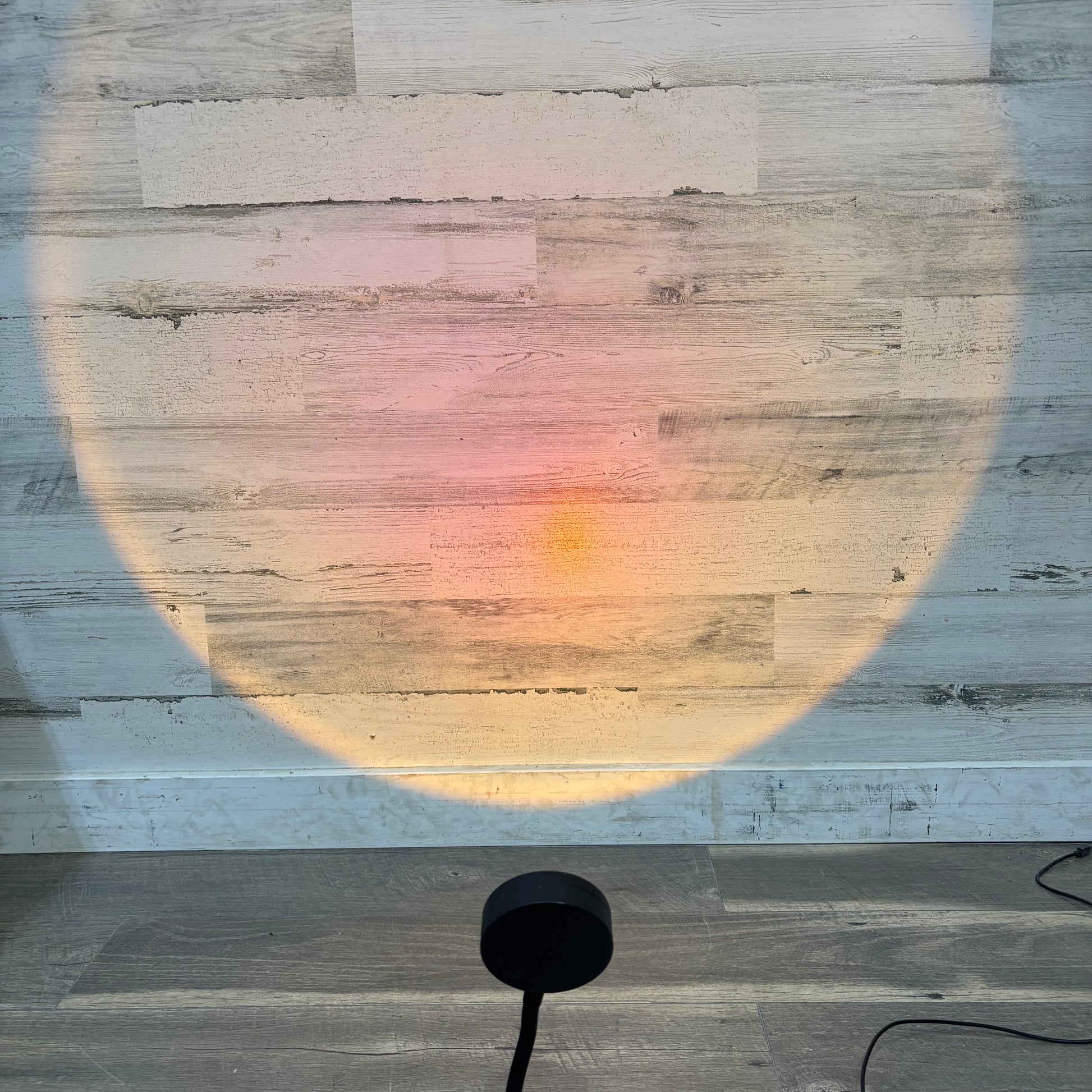 projects a warm circular dimmable sunset light, plugs in with a USB, stands 11.5” tall