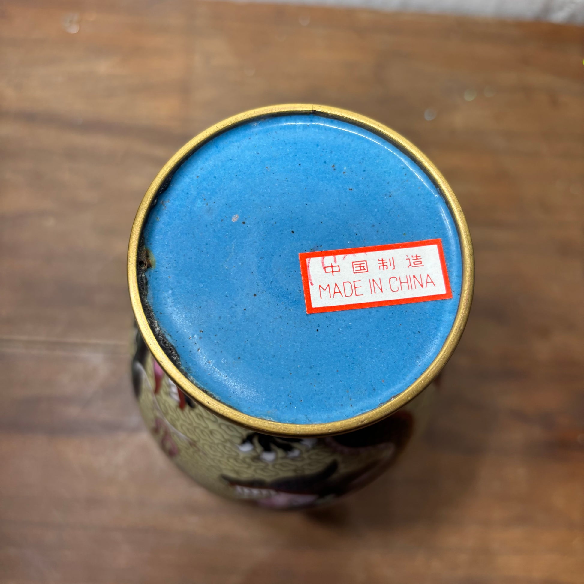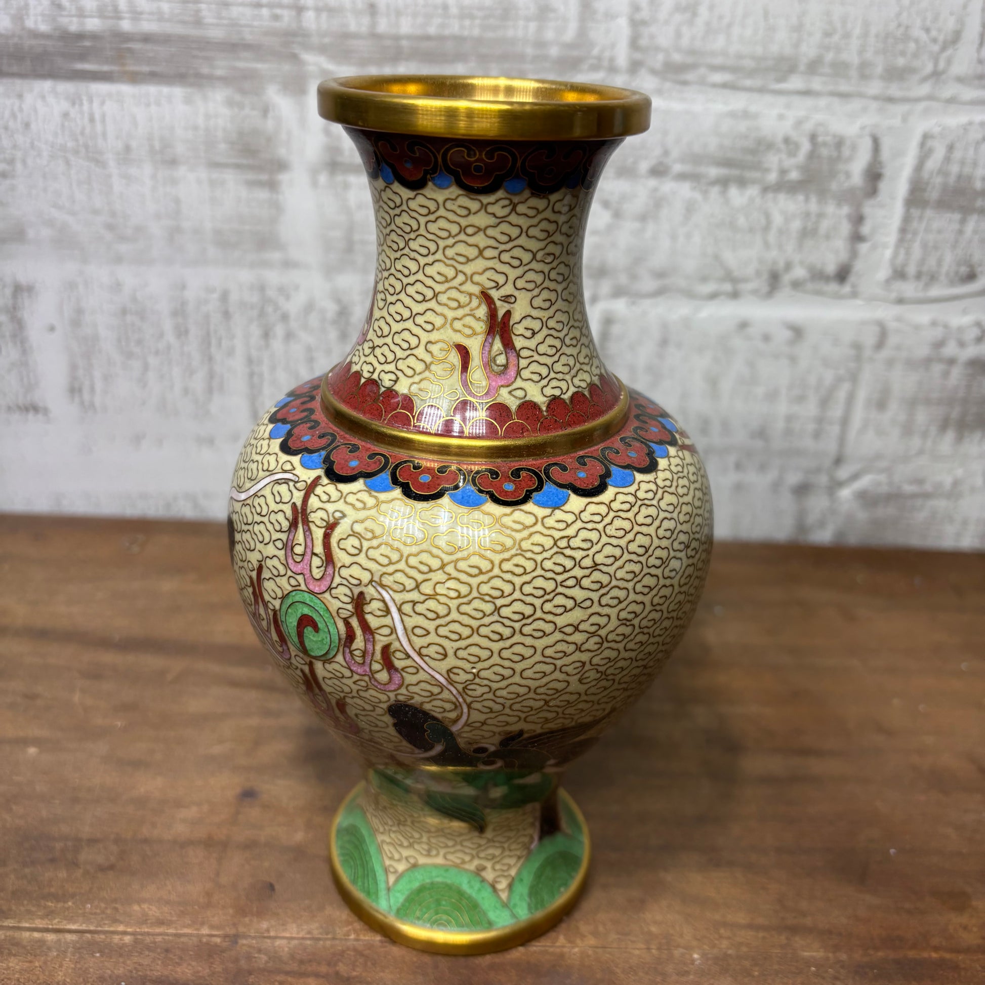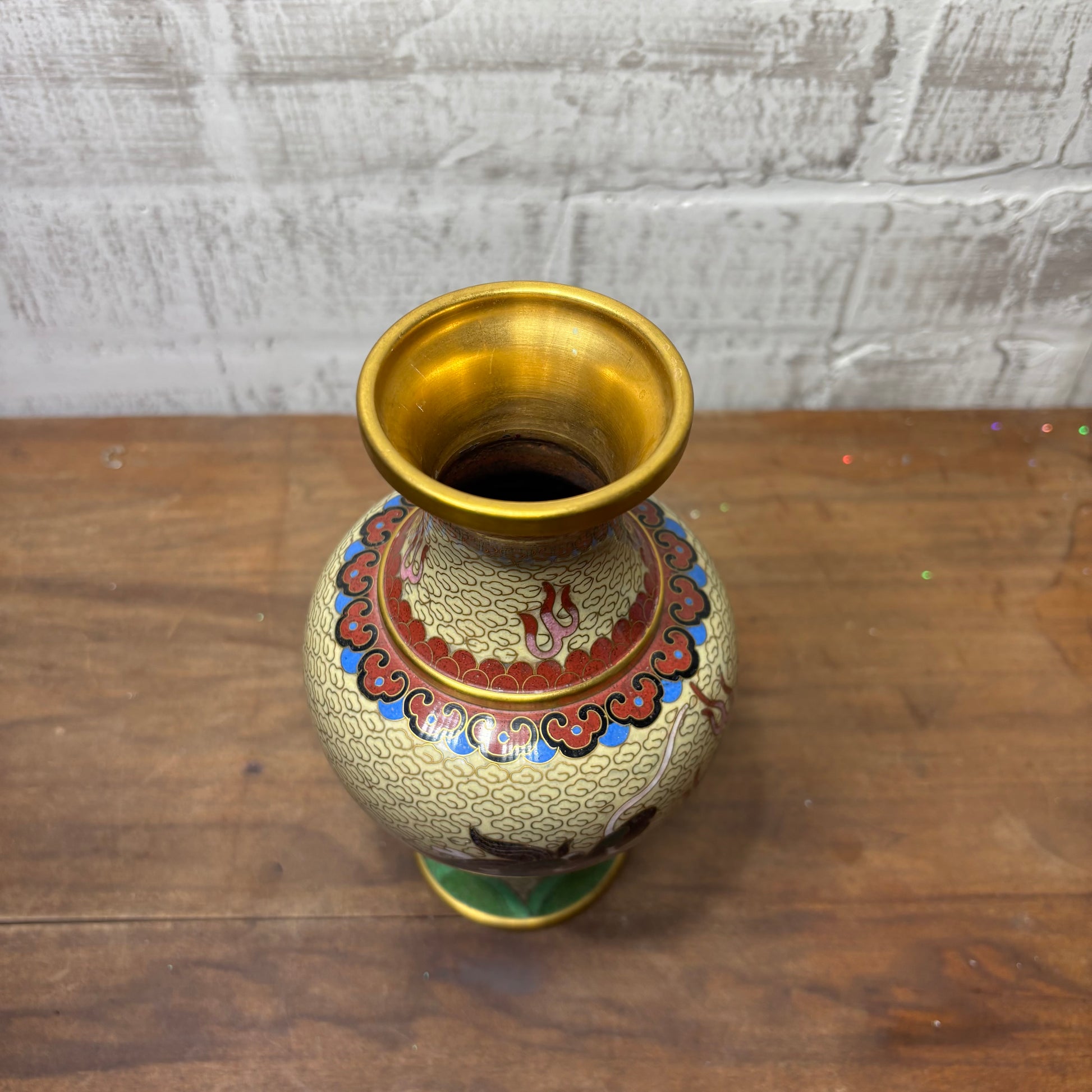 Vintage Cloisonné Asian Dragon Design Brass Vase