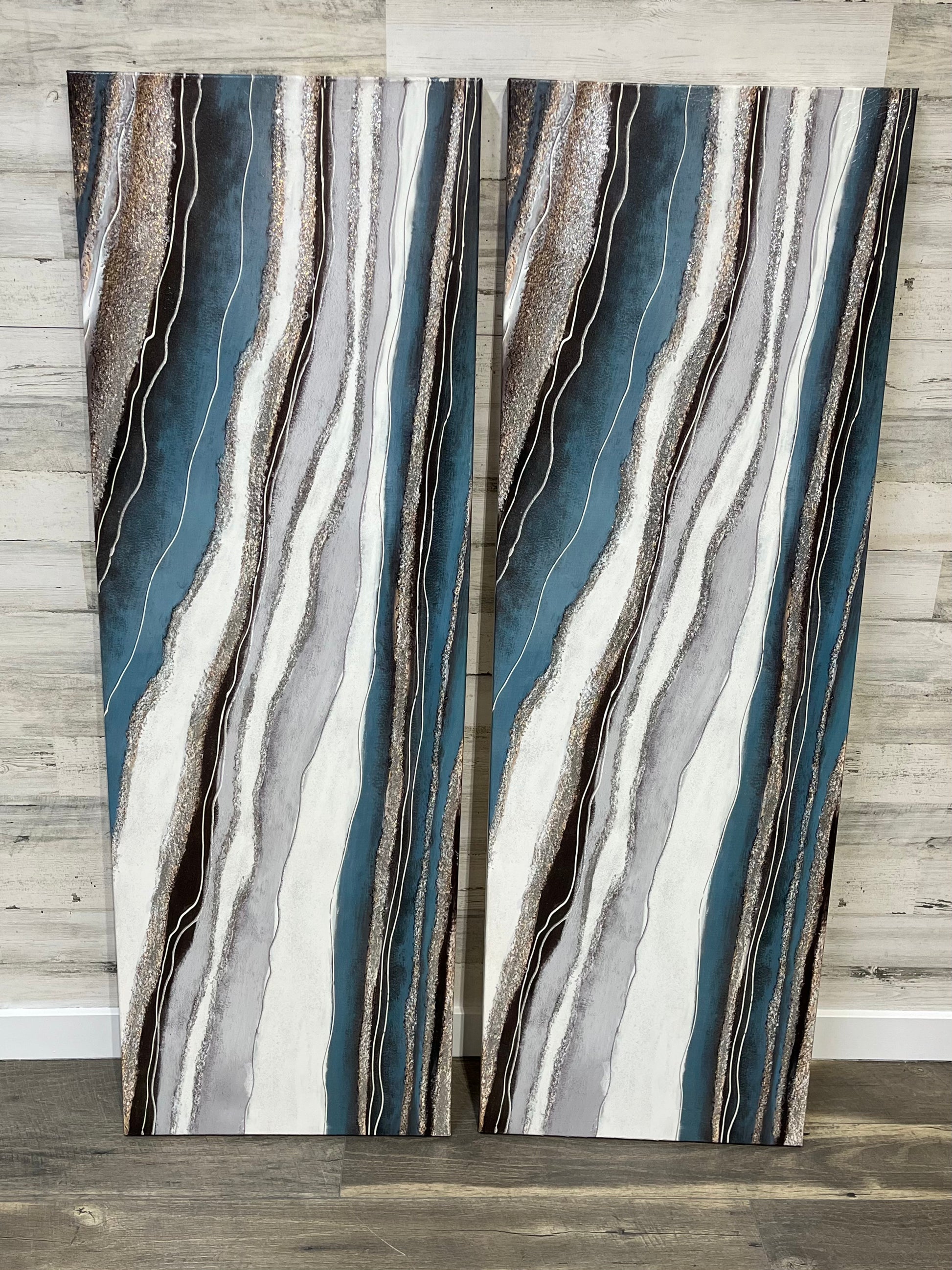 Transform any room into a sophisticated and stylish space with our Blue Gray Sparkly Marbled Canvas Set of 2. These large canvases feature a stunning marbled design in shades of blue, white, and gray, adding a touch of elegance to any wall.
