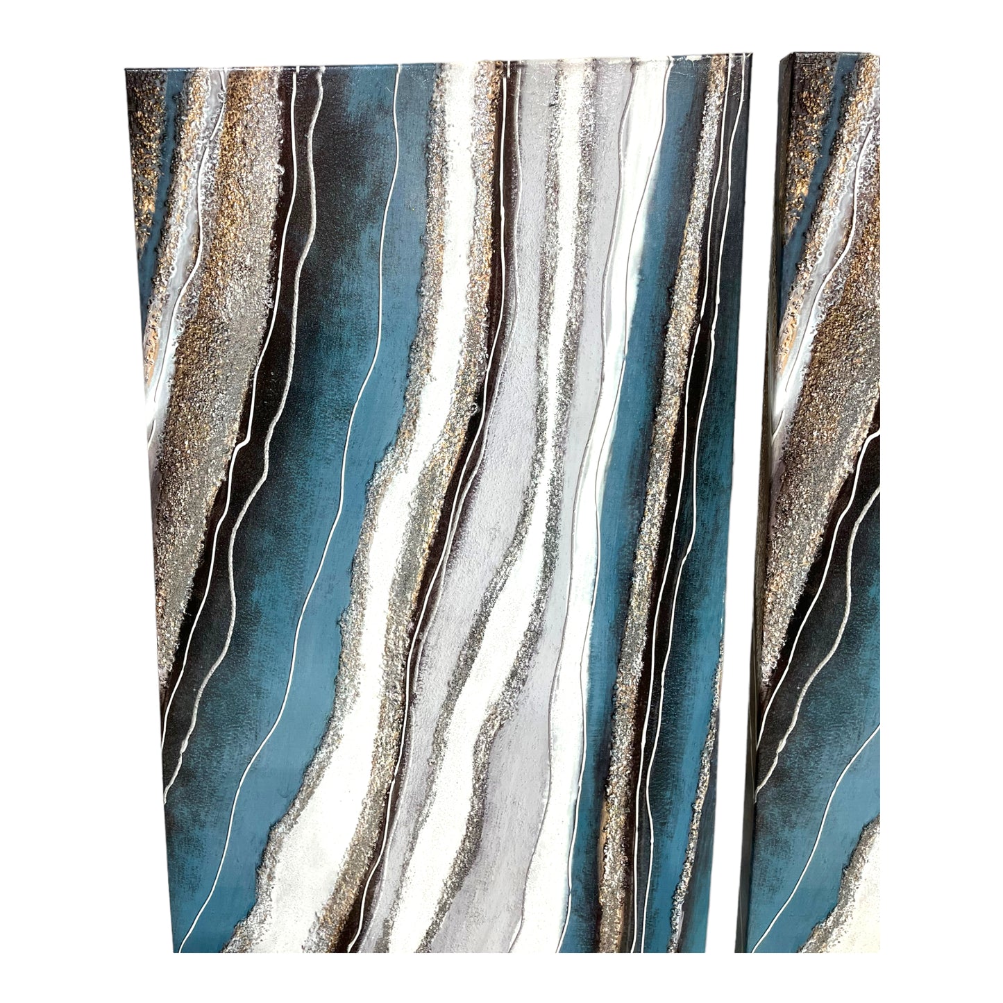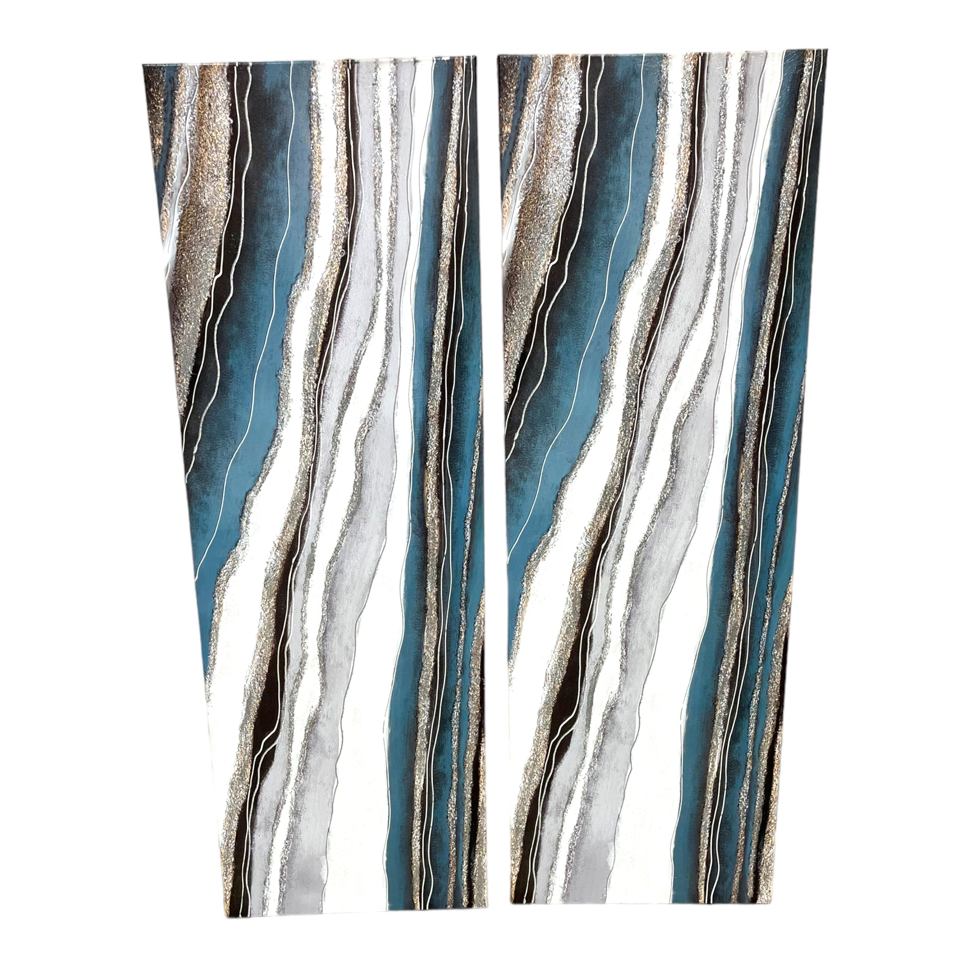 Blue Gray Sparkly Marbled Canvas Set Of 2