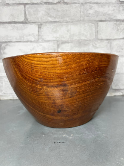 Made of danish teak wood, this has been oiled, great for a fruit bowl, or salad bowl, slight damage can been seen in photos, no special brand, it’s 5.5” tall, with a diameter of 9.5”
