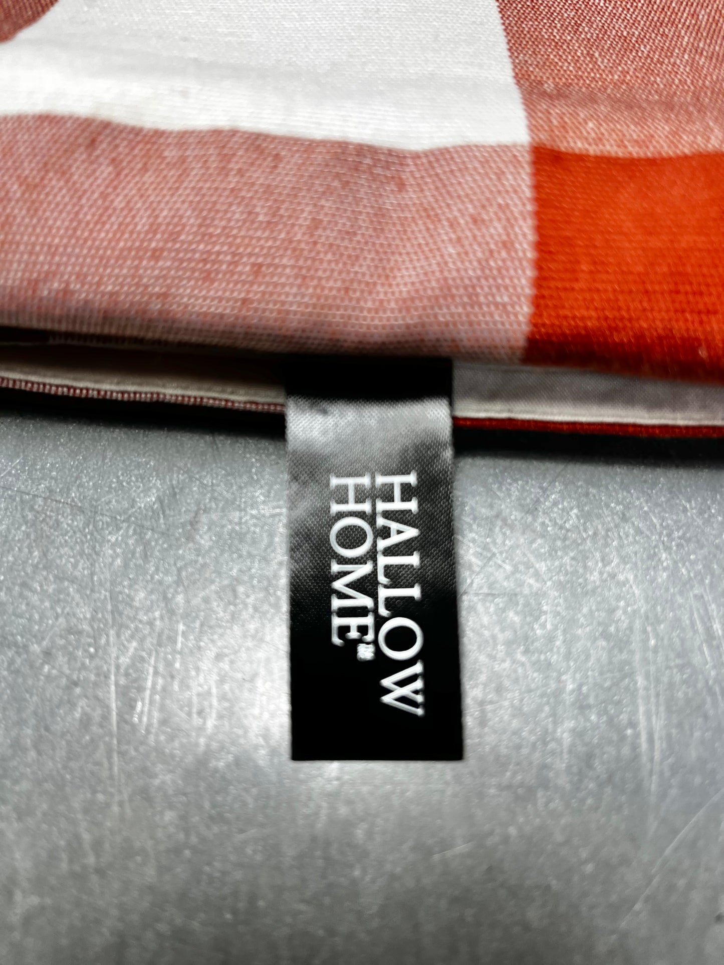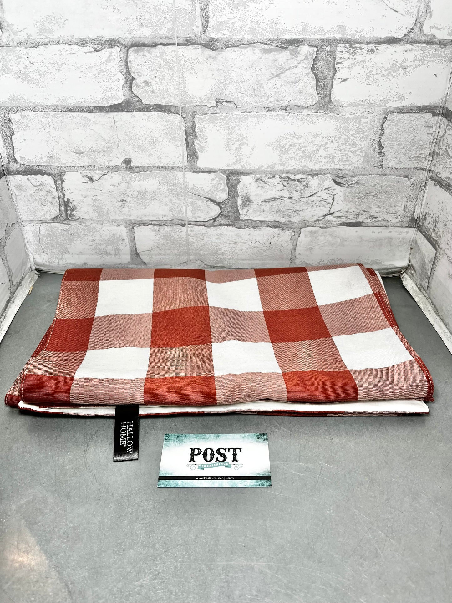 Add to your dining room this Hallow Home Checkered Square Table Runner! Made of polyester, and is very long! These orange colors are cool and calming. 70” long, 14” wide!