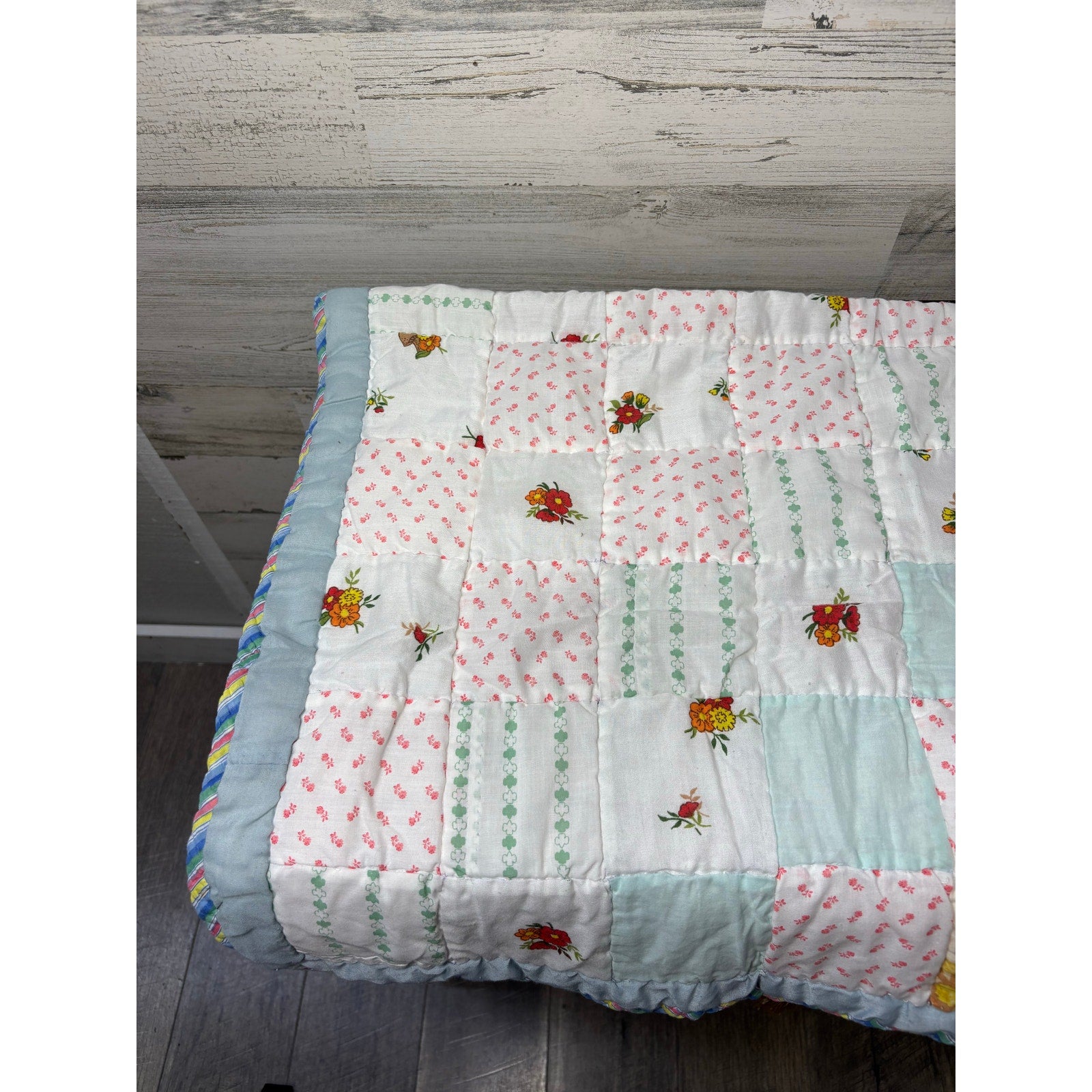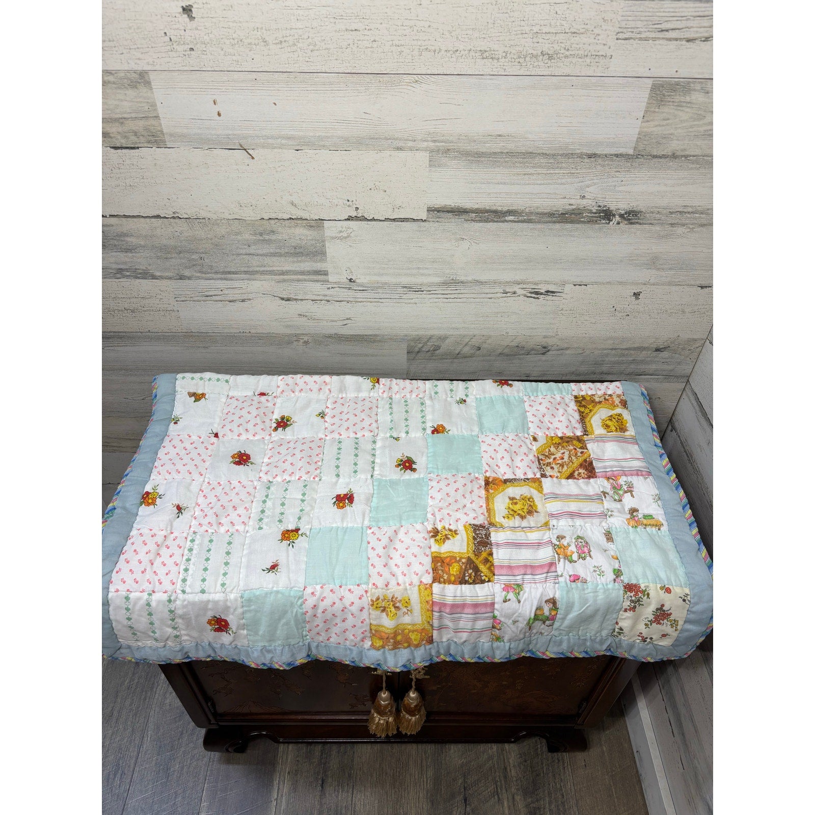 Handmade multiple patterns, florals, butterflies, scrolls etc, quilt, 34” by 42”