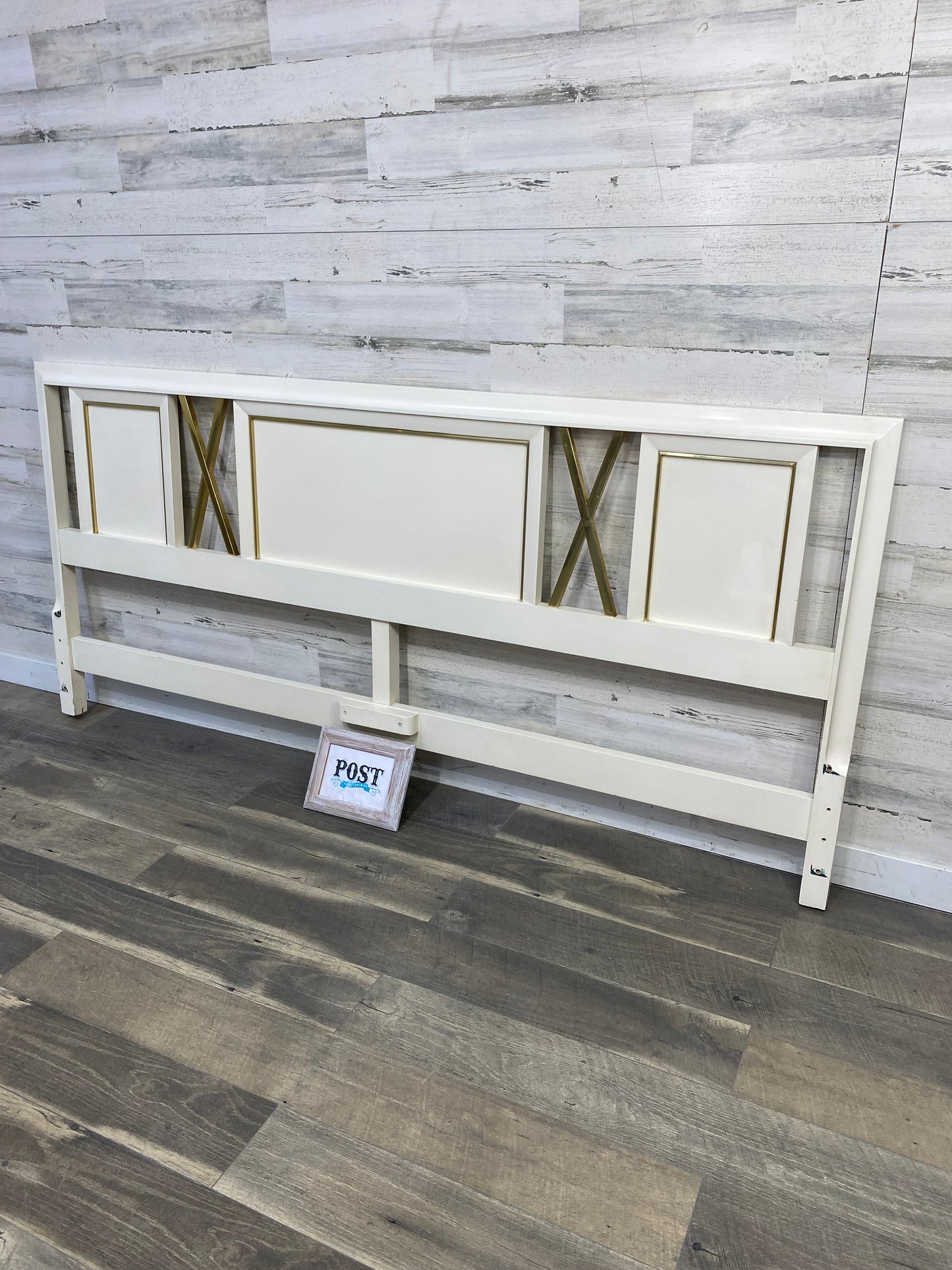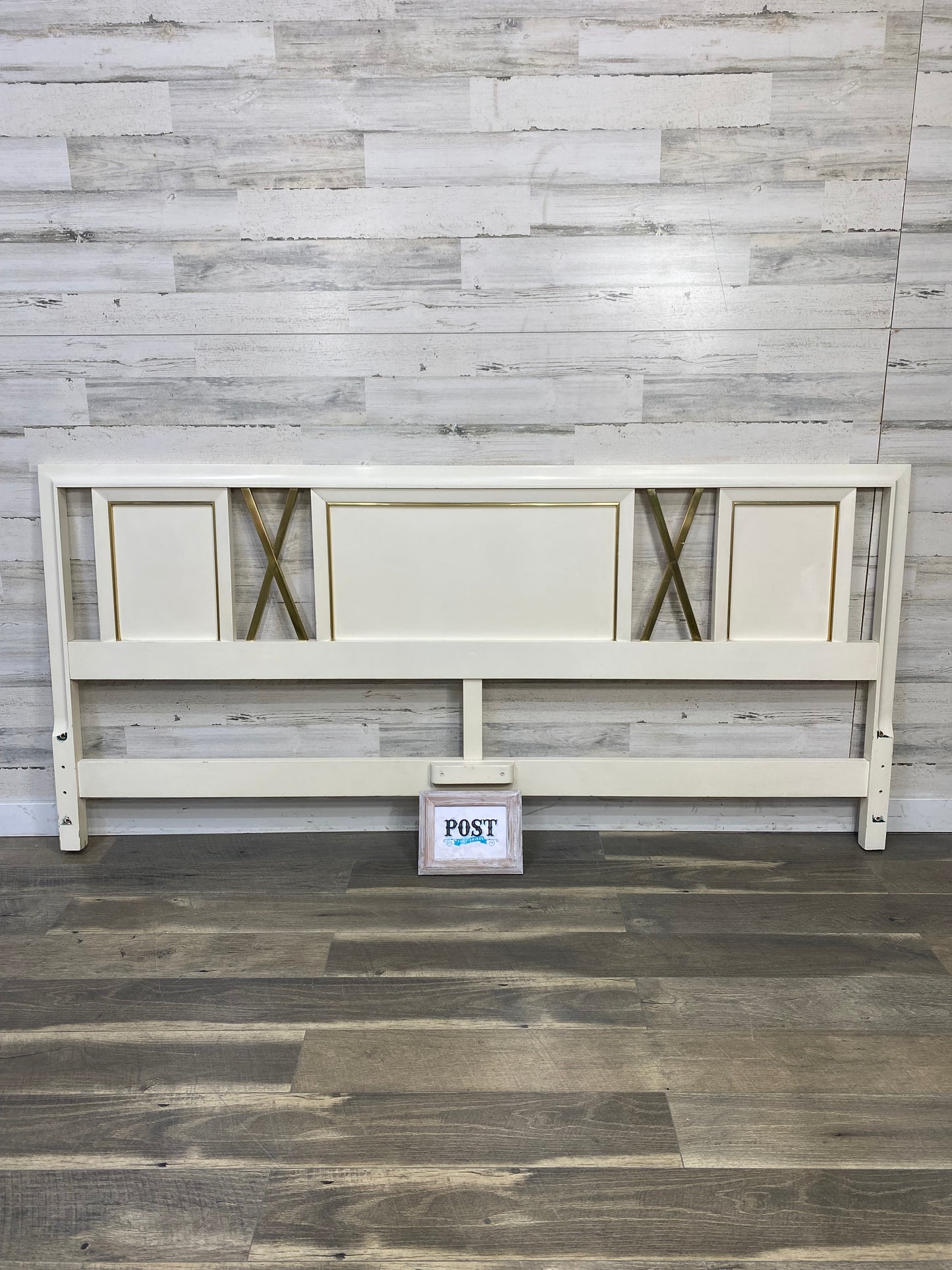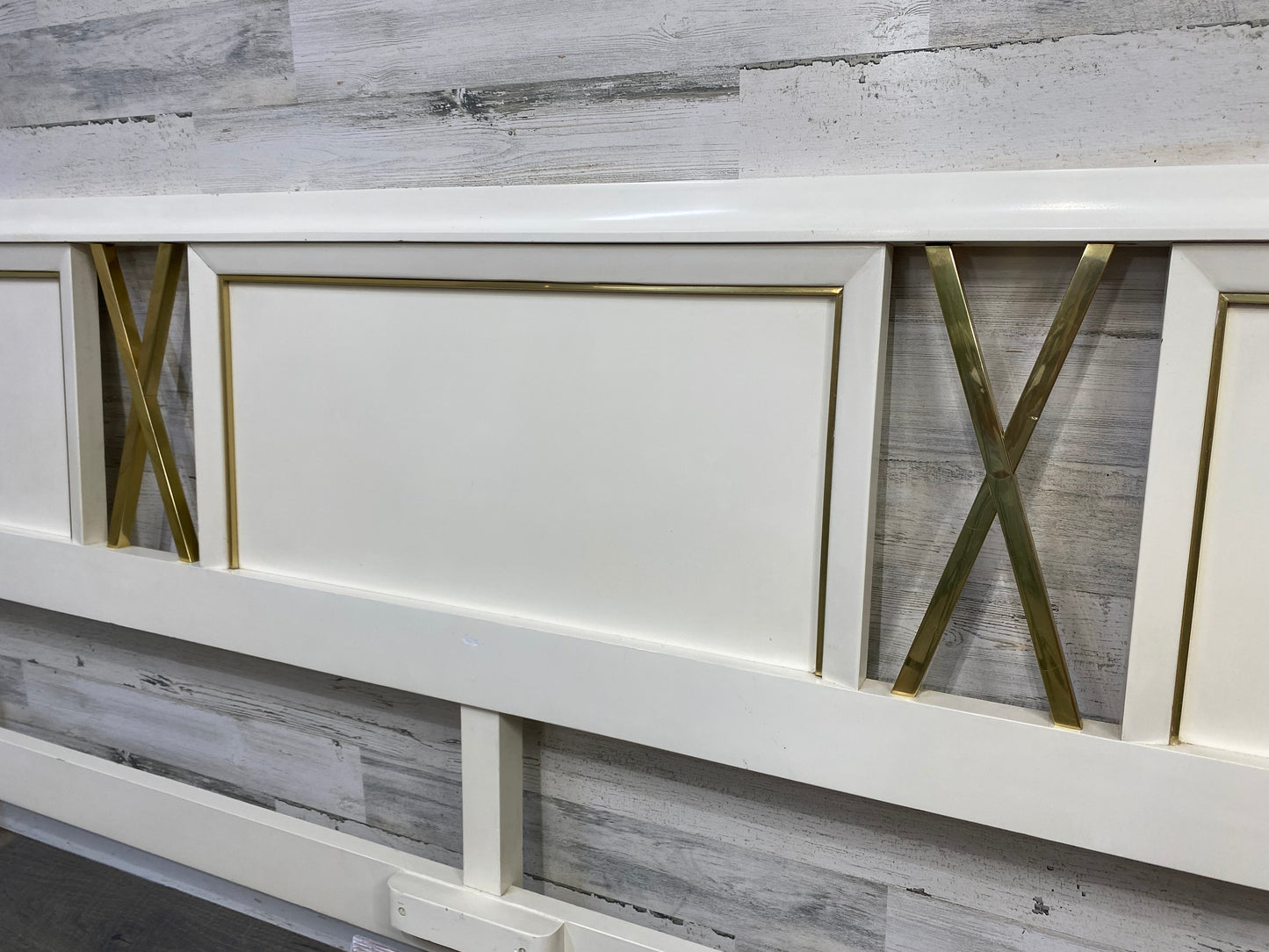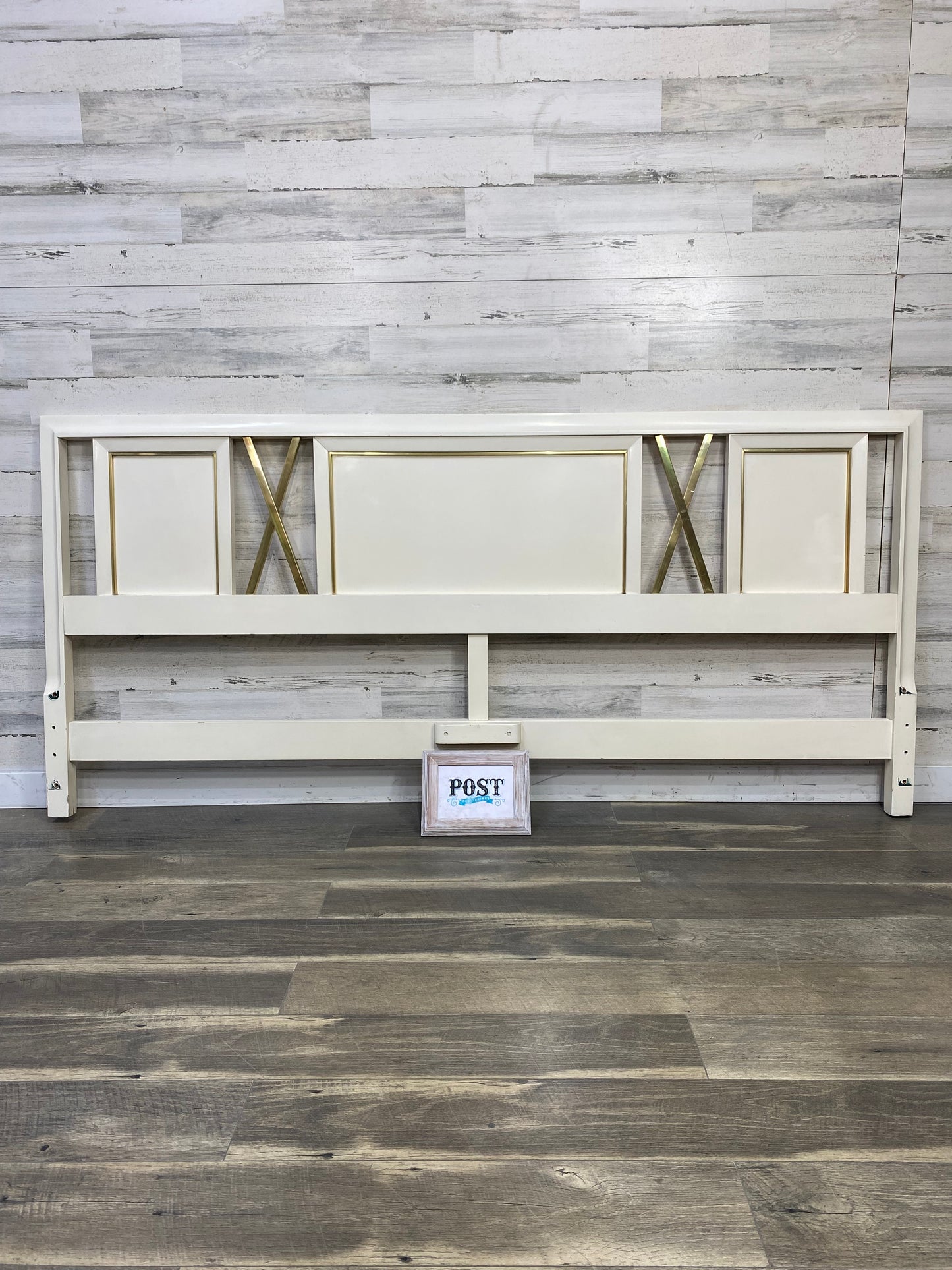 King size mid century headboard. 7806-swing bed. American of martinsville. Hollywood regency era. White and gold. Very heavy and sturdy. Great pre owned condition.