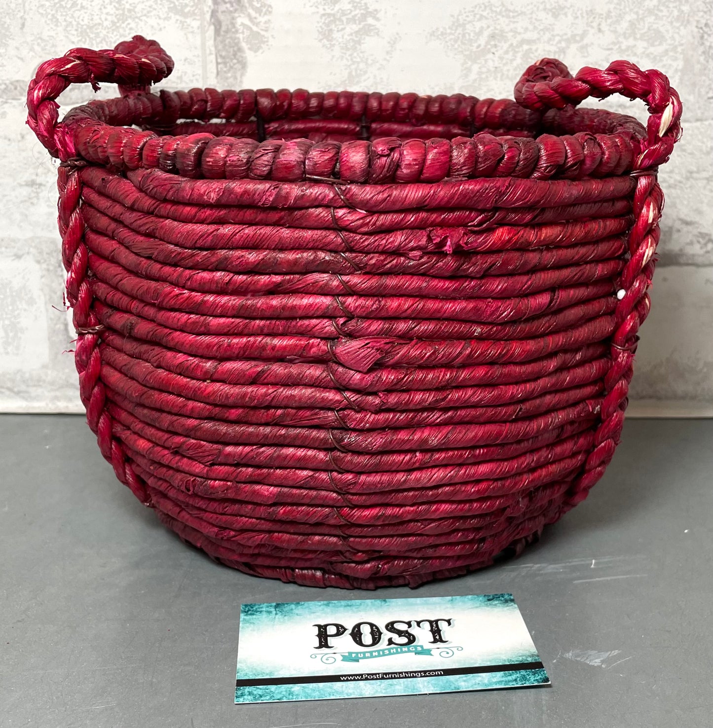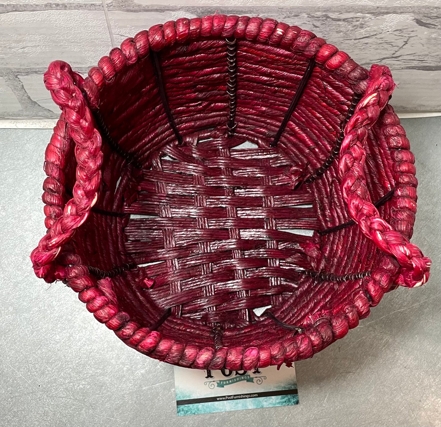 woven Seagrass maroon color, it has two handles, wire framing, can hold plants