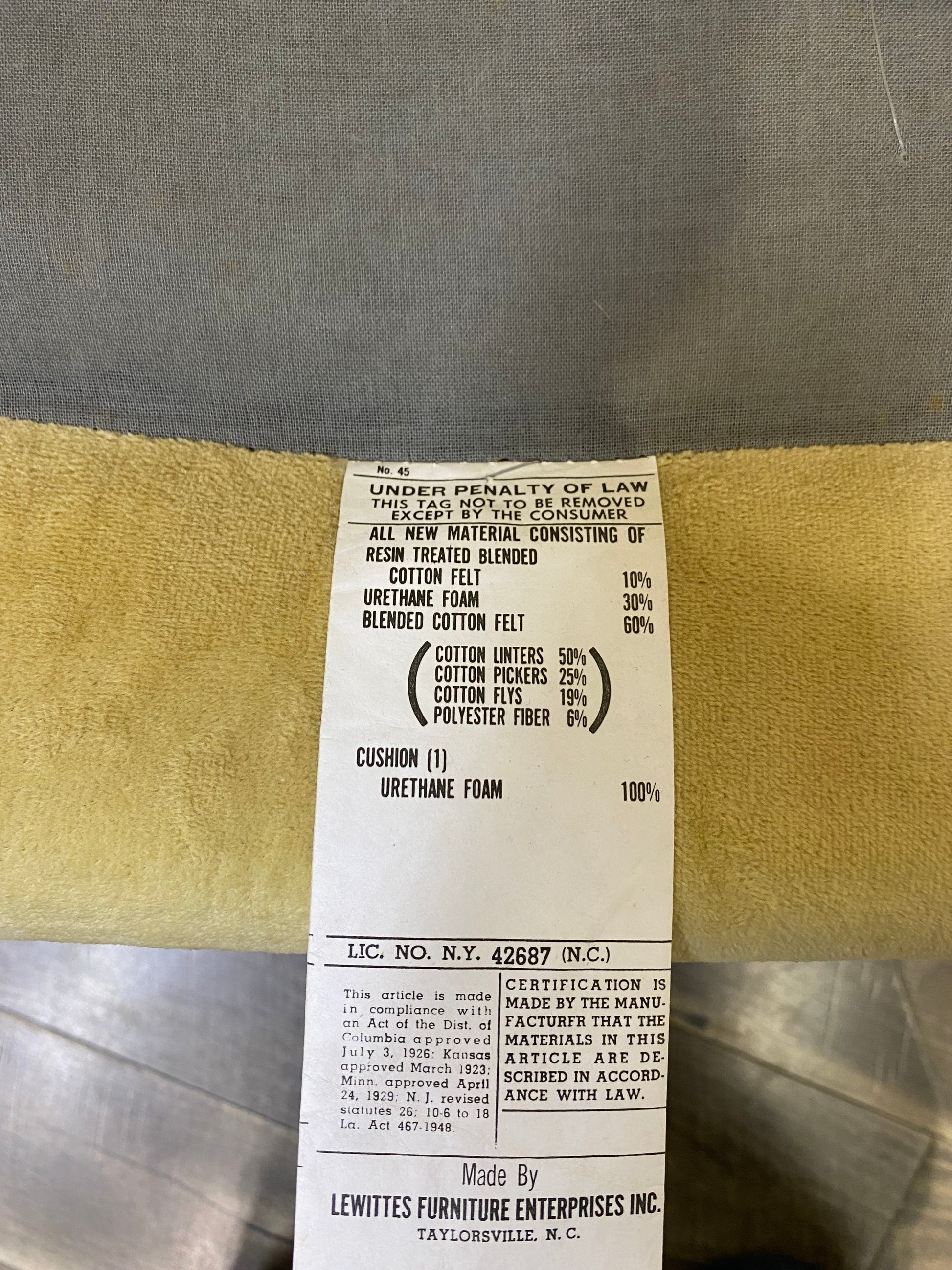 Set of 2 gorgeous yellow wingback chairs. Vintage Lewittes furniture brand. Excellent condition with nailhead trim accent around arms. No rips or stains. Tufted back.