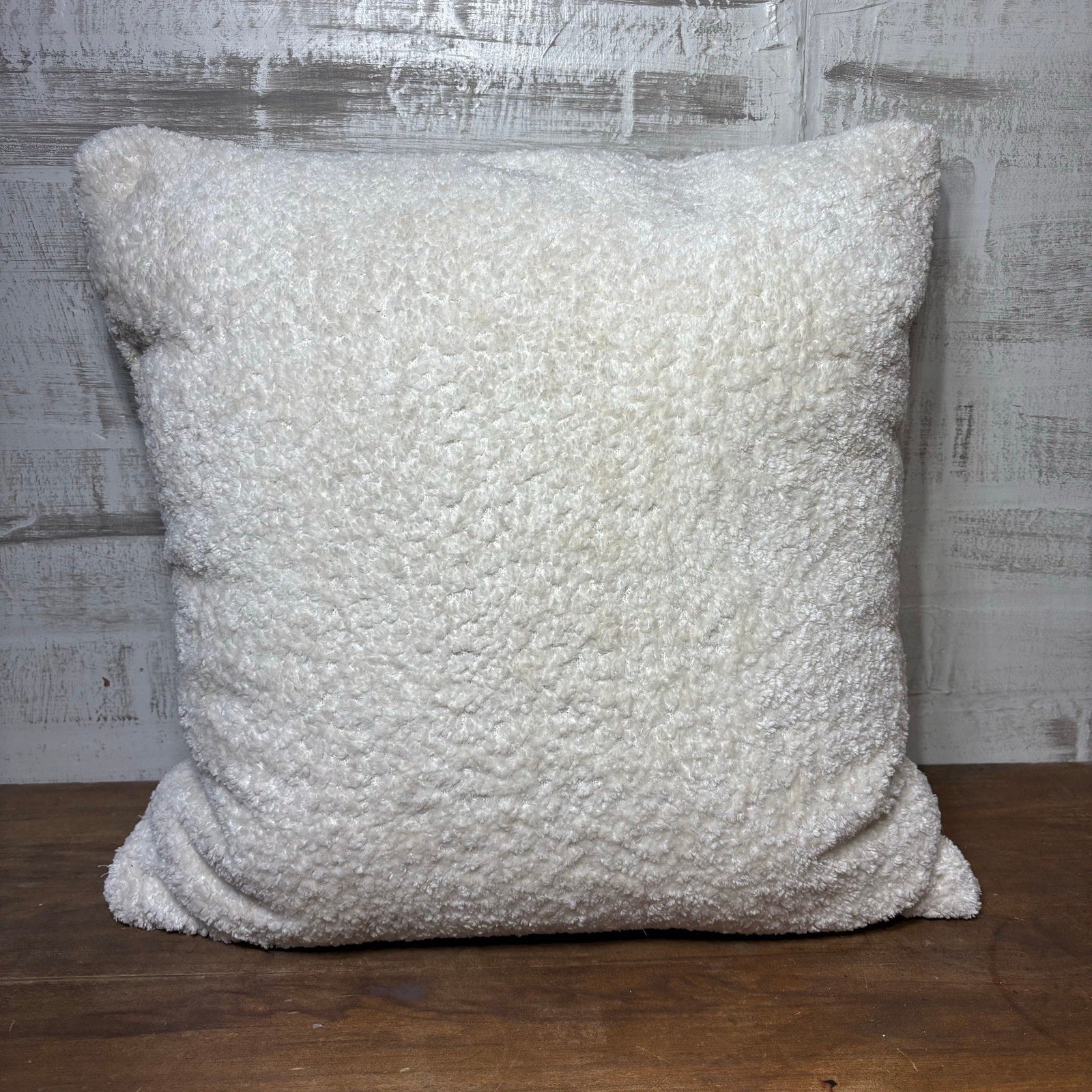 Soft white square shaped throw pillow, no zipper, 17” by 17”