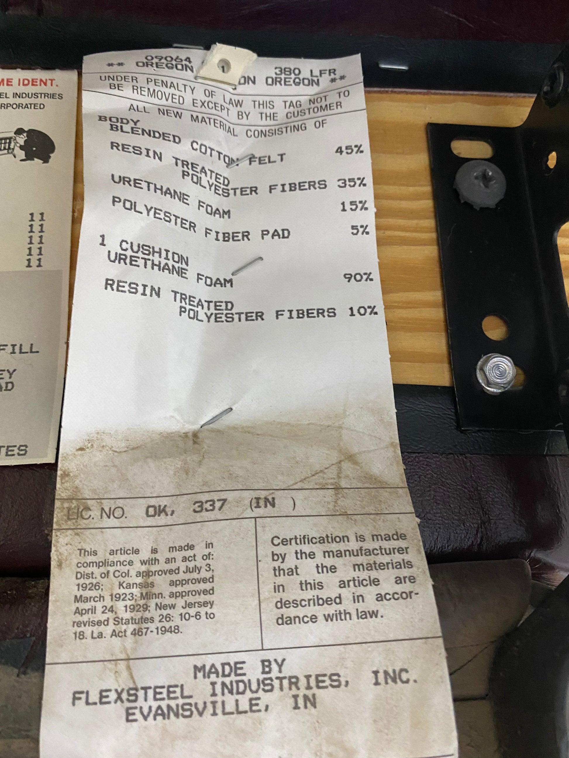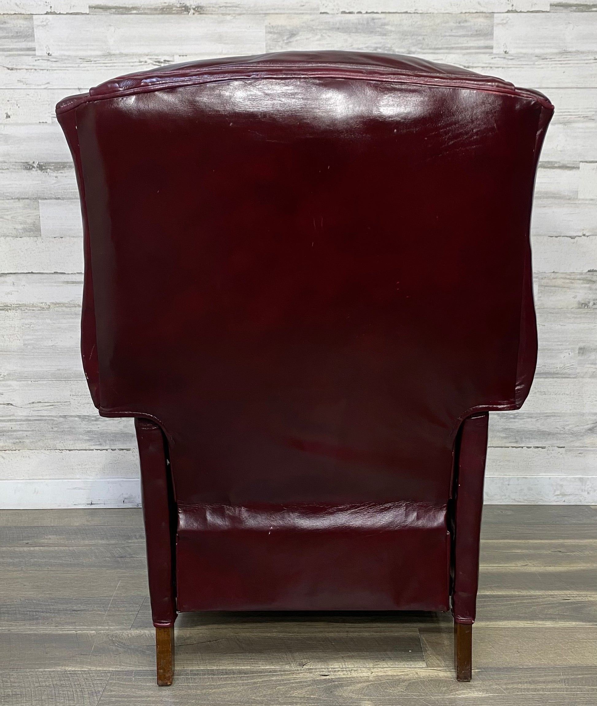 Maroon red flexsteel recliner chair. Wingback style. Shows signs of vintage wear ( a few scuffs) very comfortable and sturdy.