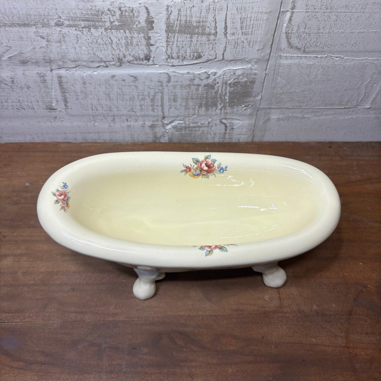 VB Athena porcelain claw foot floral bathtub soap dish bathroom decor, 9” long, 4” tall, 4” wide