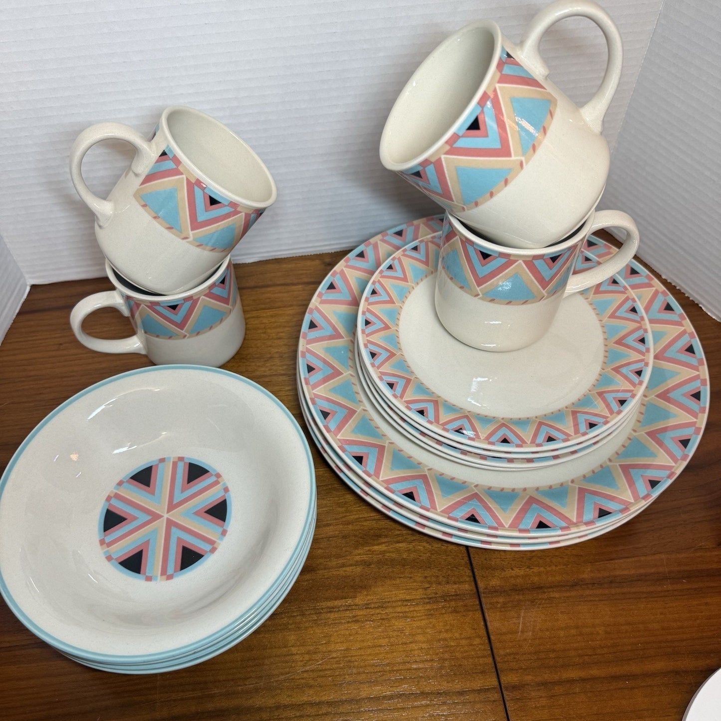 Vintage 16pc Set Of Sango Zuni Stoneware Dishes Japan