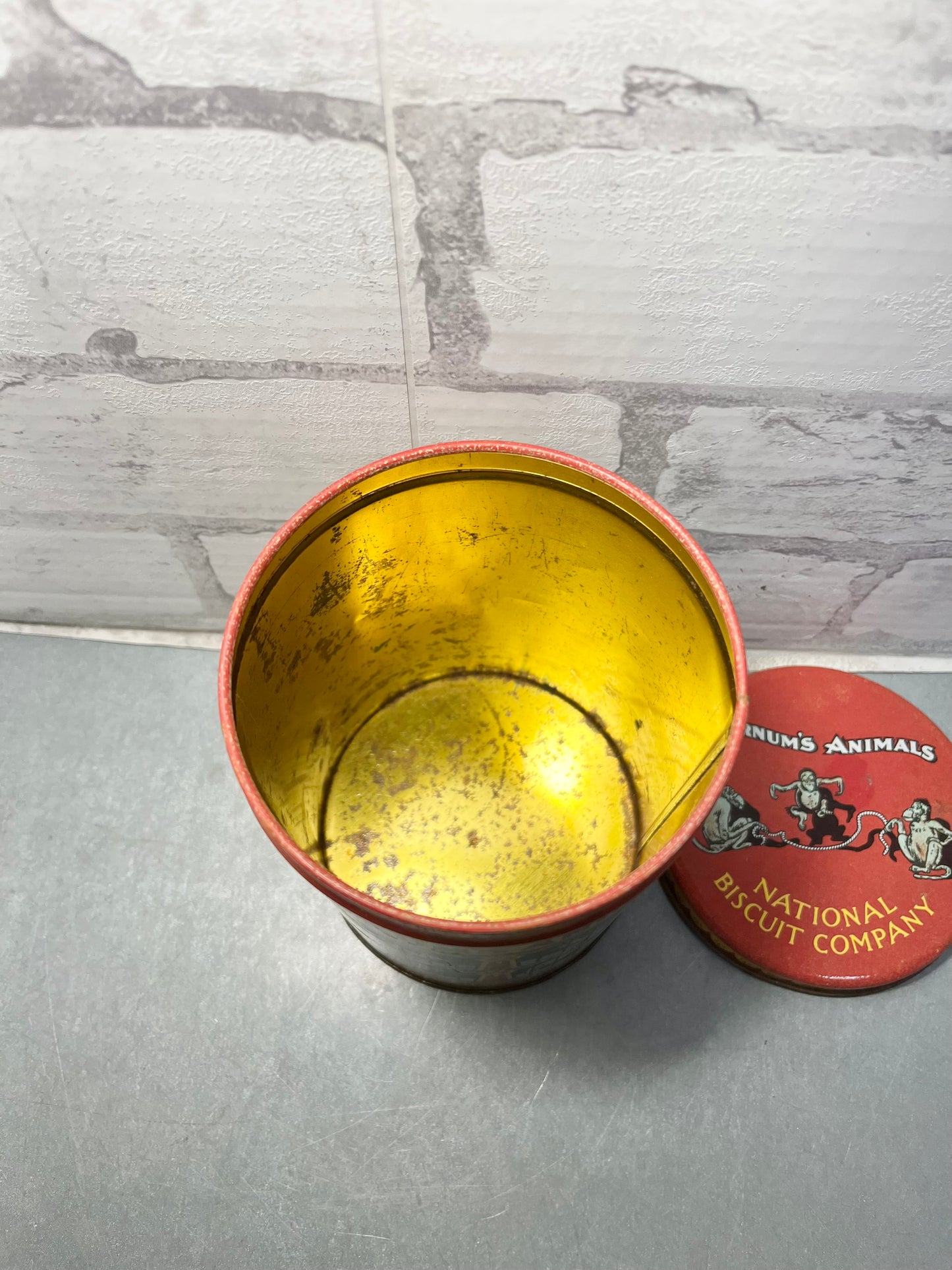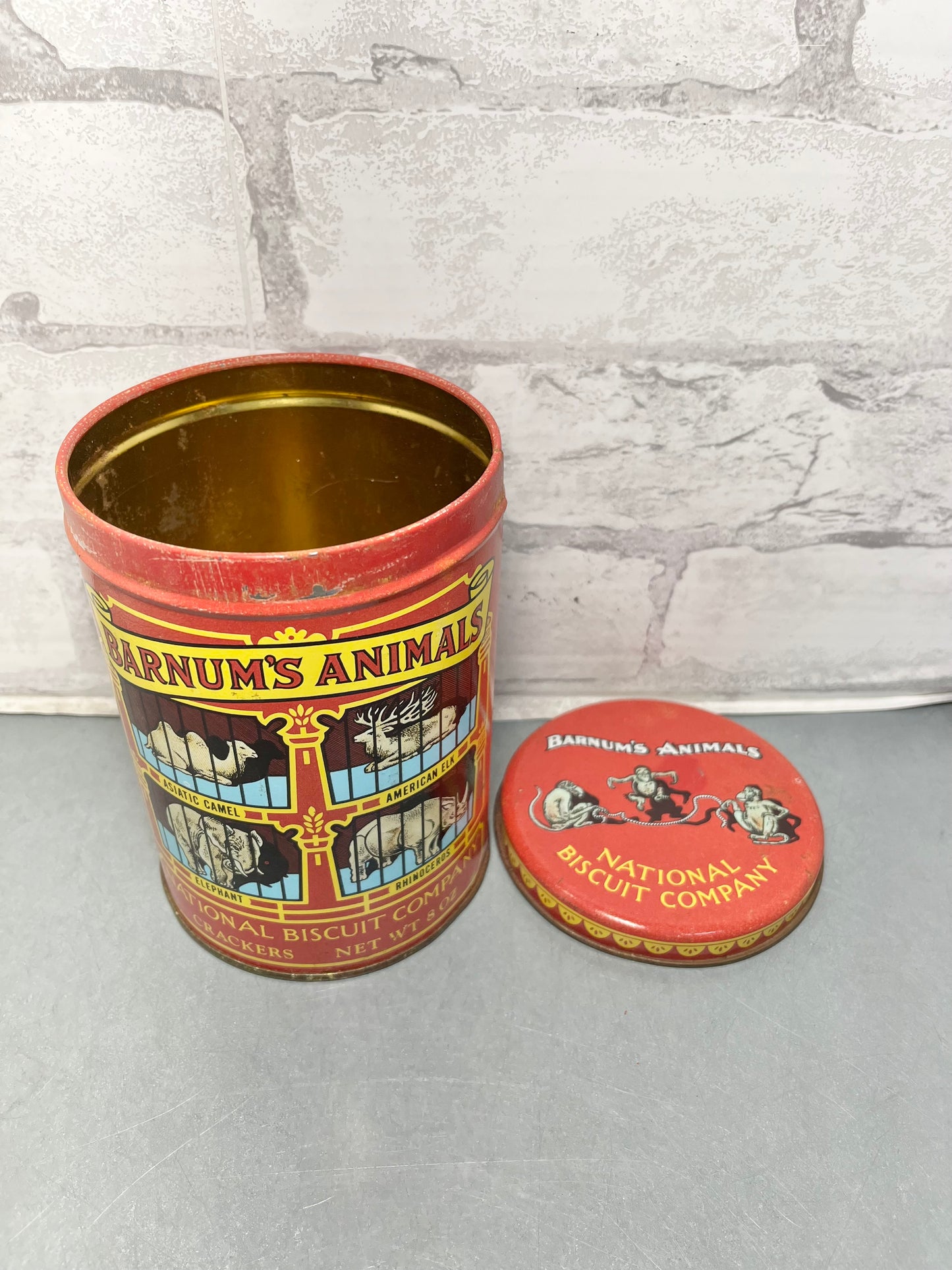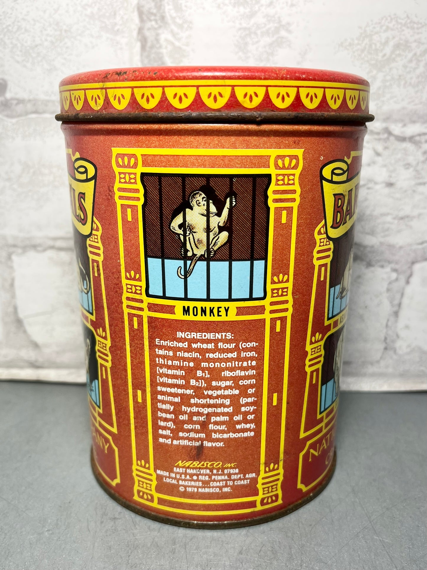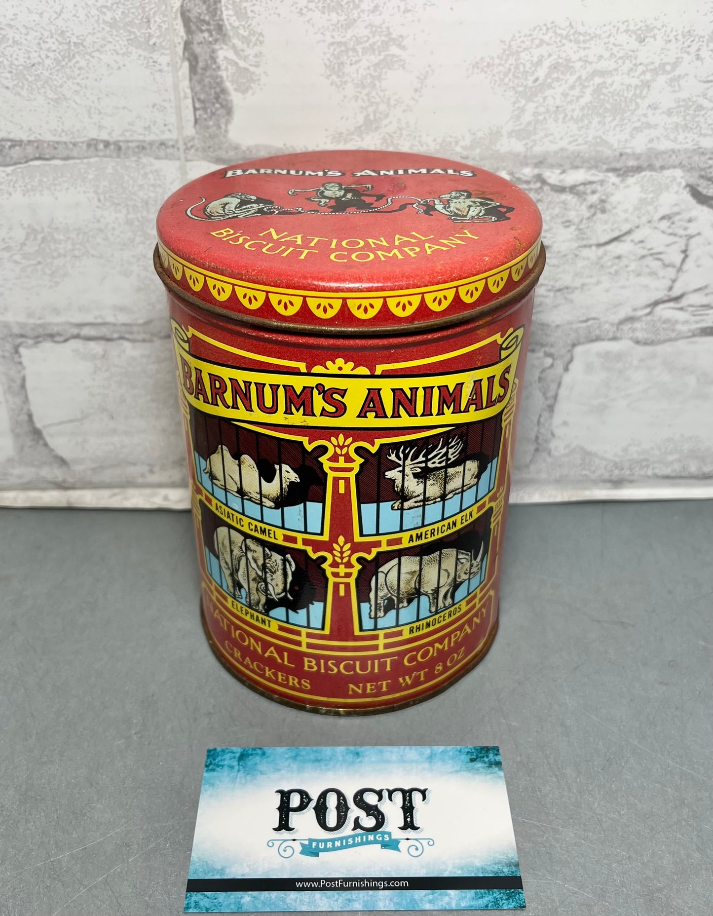 Bring a touch of vintage into your home with this Vintage 1979 Barnum’s Animals National Biscuit Company Tin Replica Of 1914. Has a little rusting from age, but great for collectors! 6” tall, 4.5” diameter. 8oz.