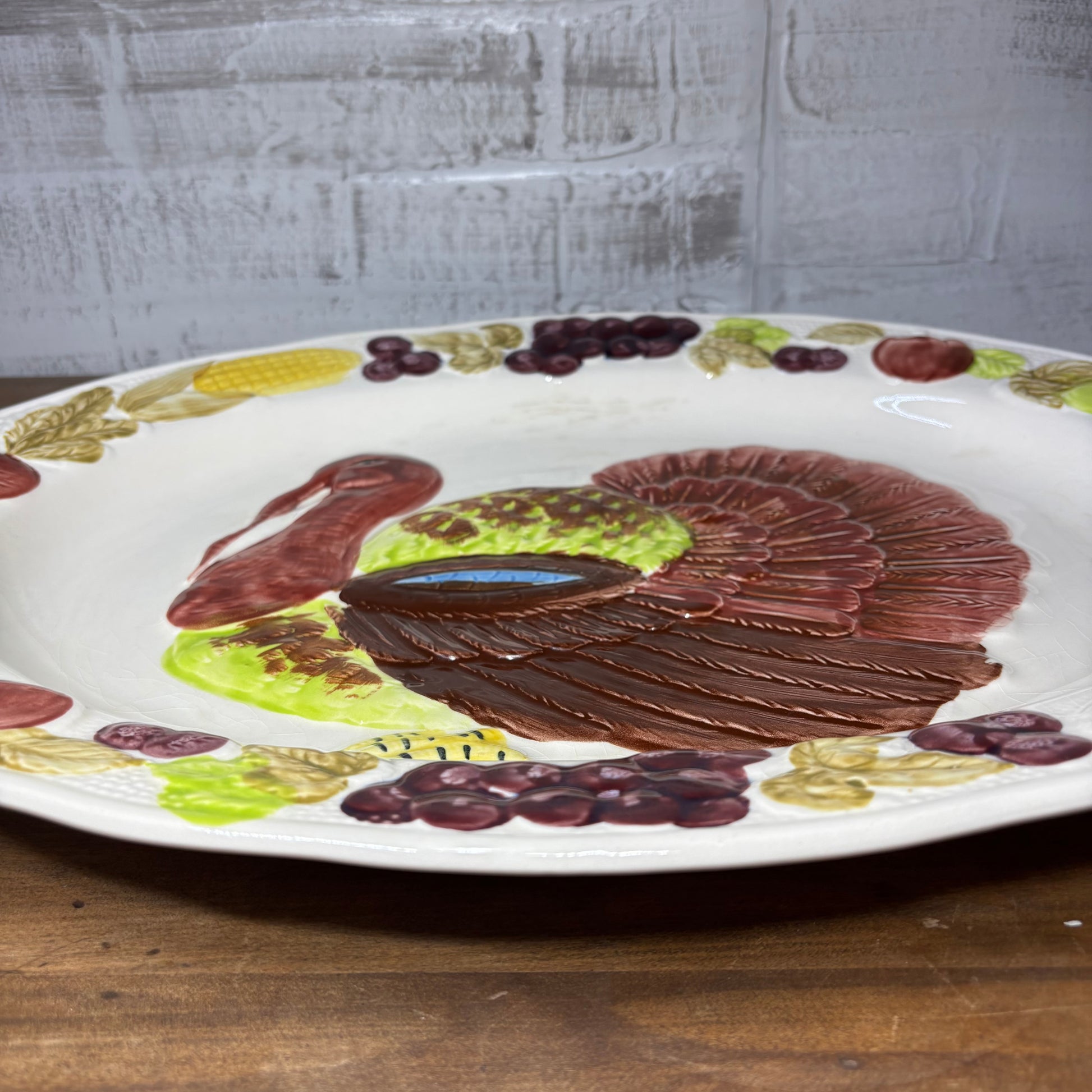 Vintage hand painted and crafted thanksgiving textured ceramic platter, 18.5” by 14” wide