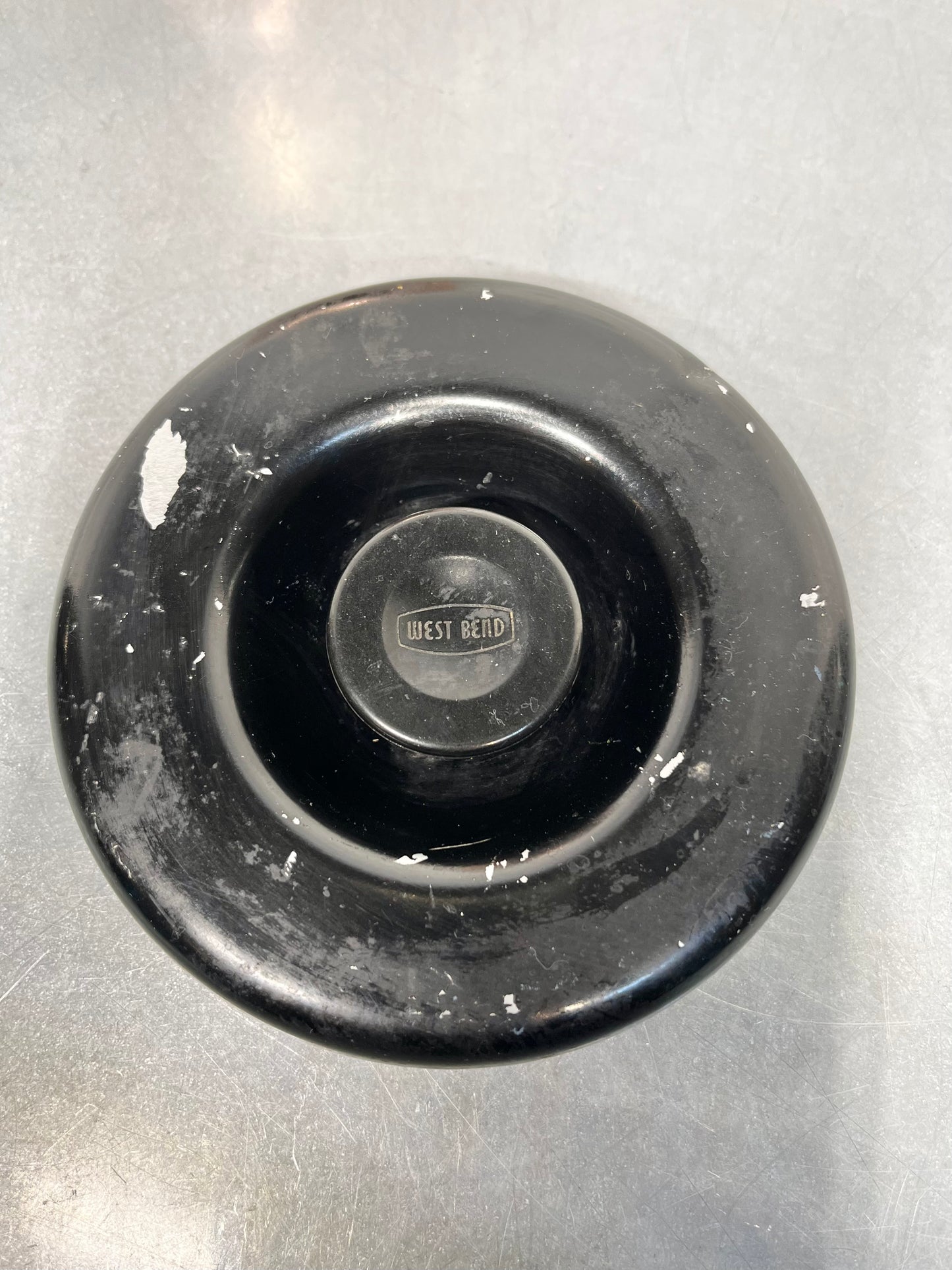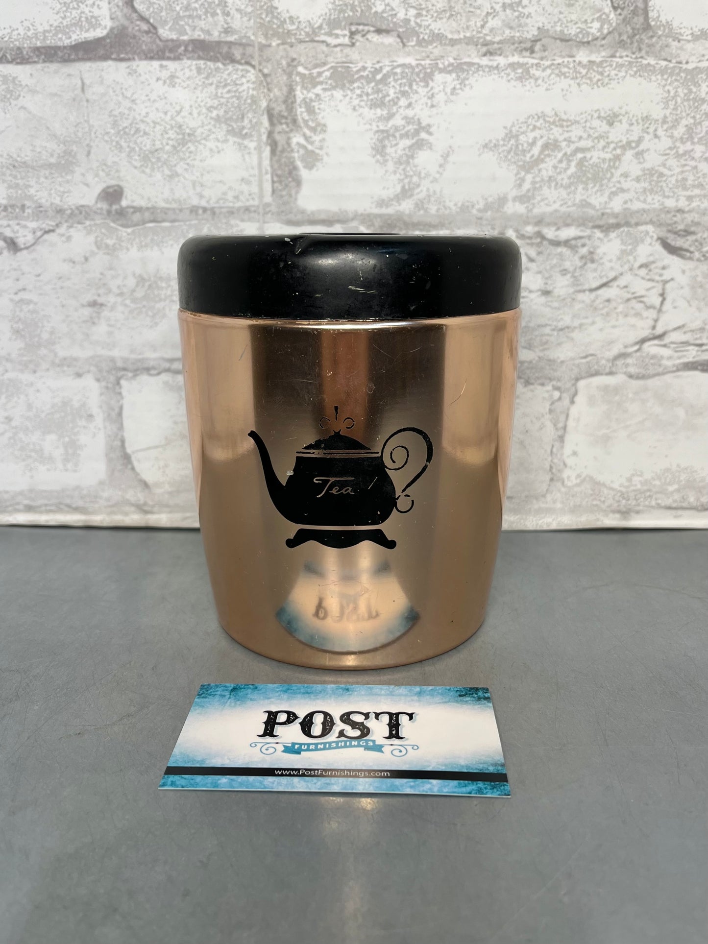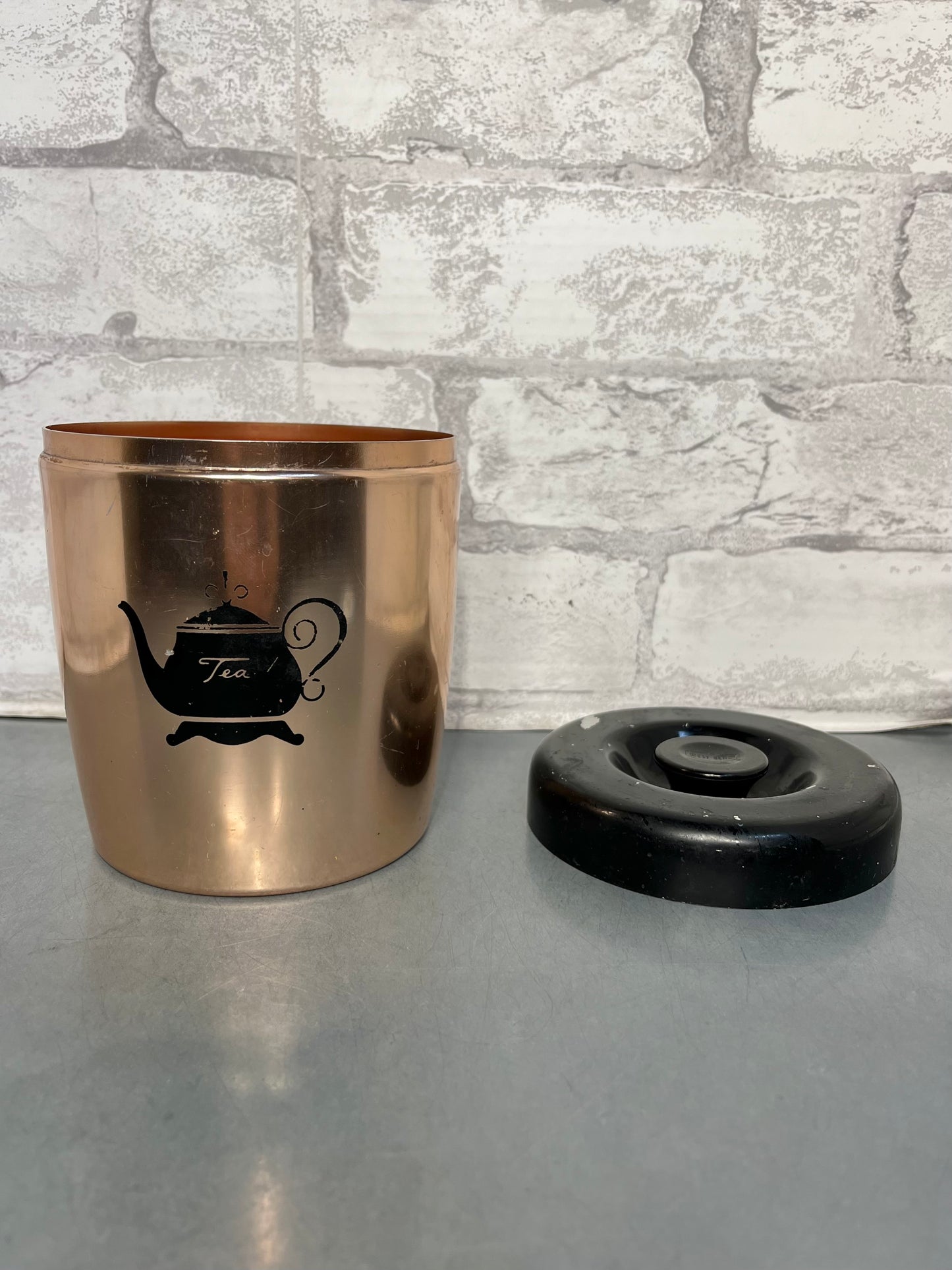 Vintage West Bend Copper Colored Aluminum Canister, great for any kitchen. Lid has a handle to easily take off. Has some scratches from use. 5.5” tall, 4.5” wide.