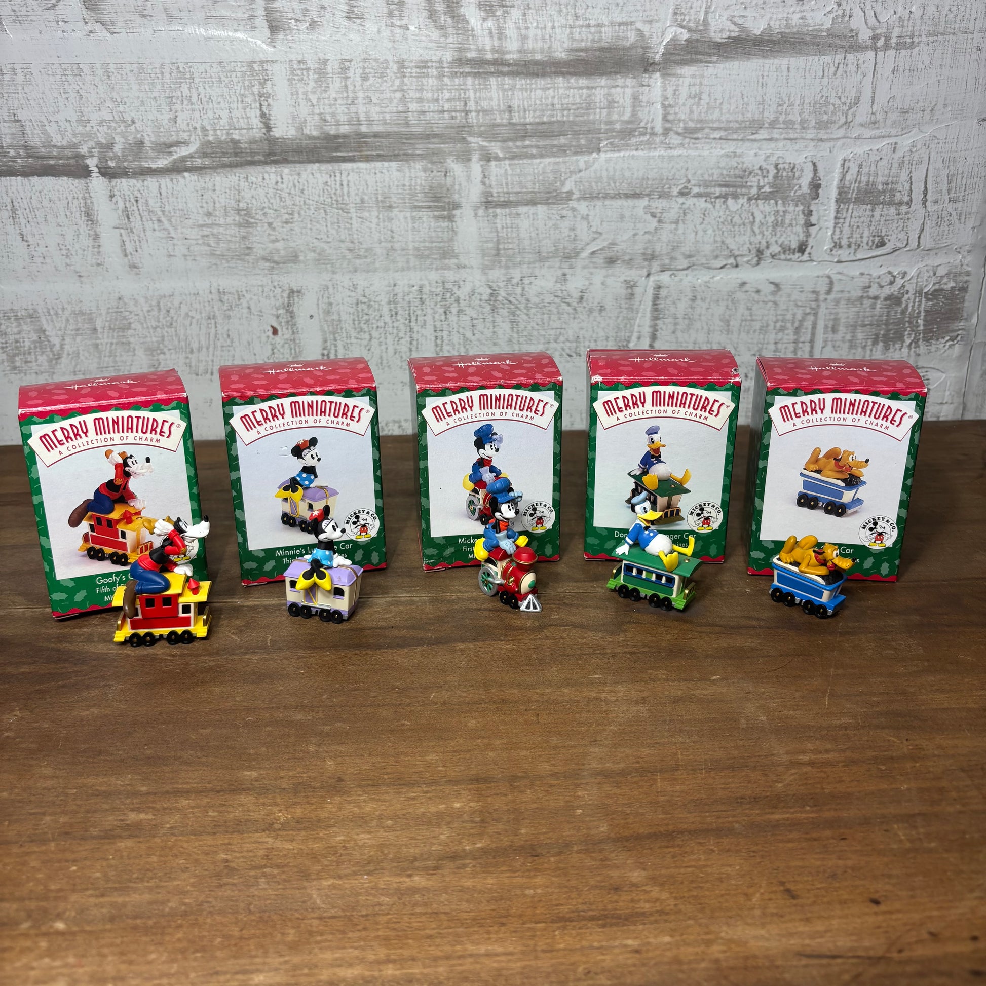 1998 hallmark merry miniatures collection of five mickeys express train, Donald Duck, Pluto, Goofy, Minnie and Mickey, sizes vary