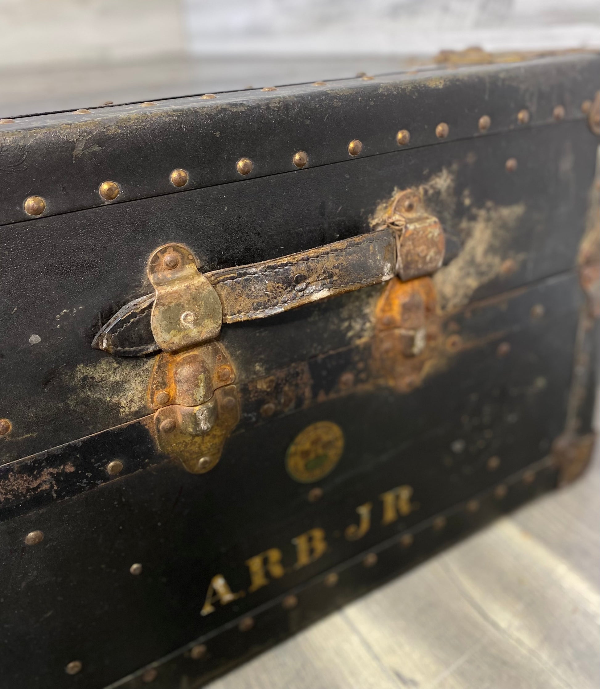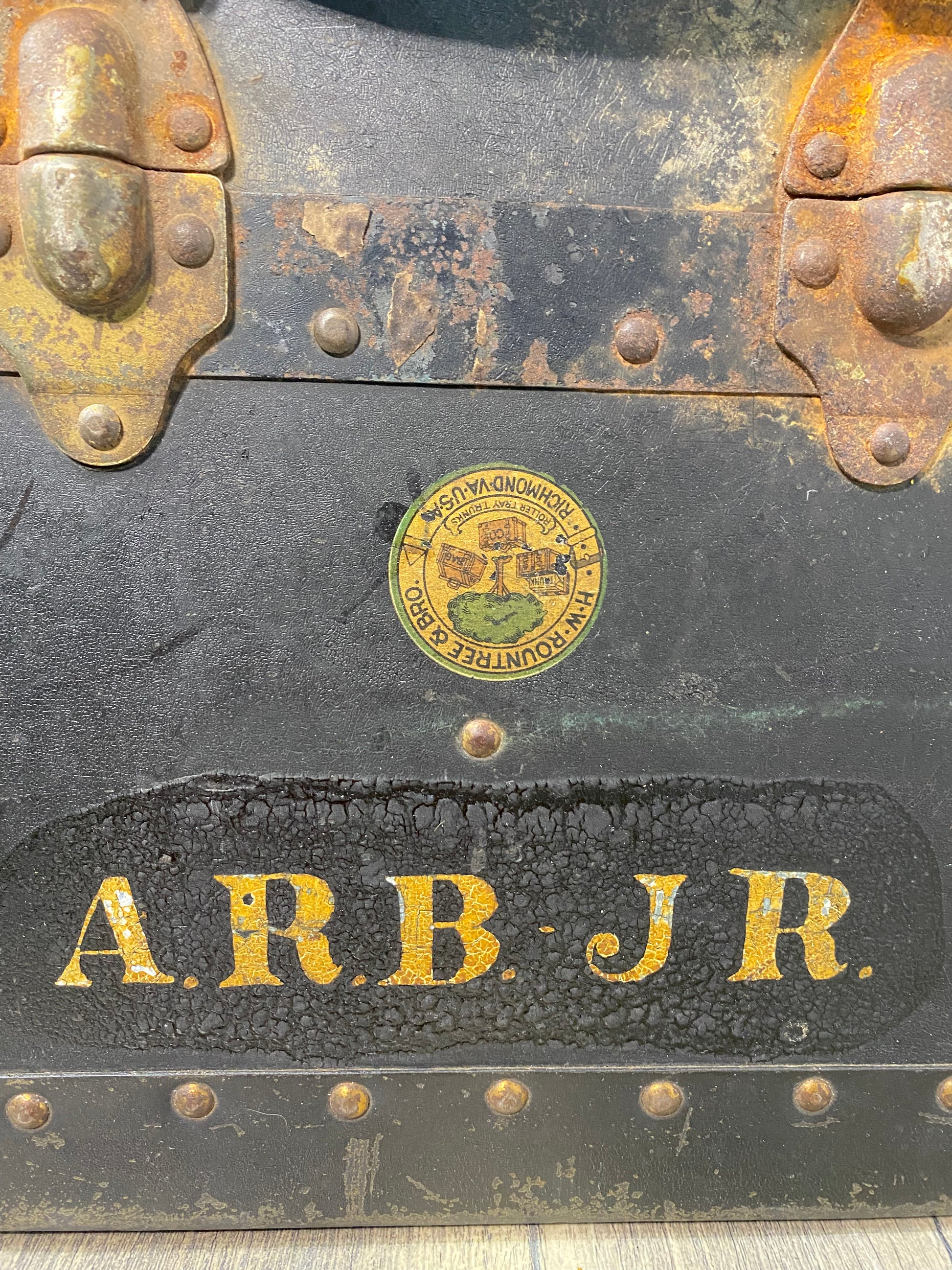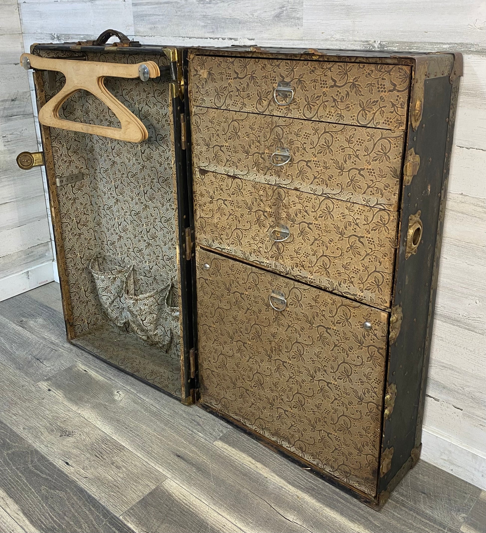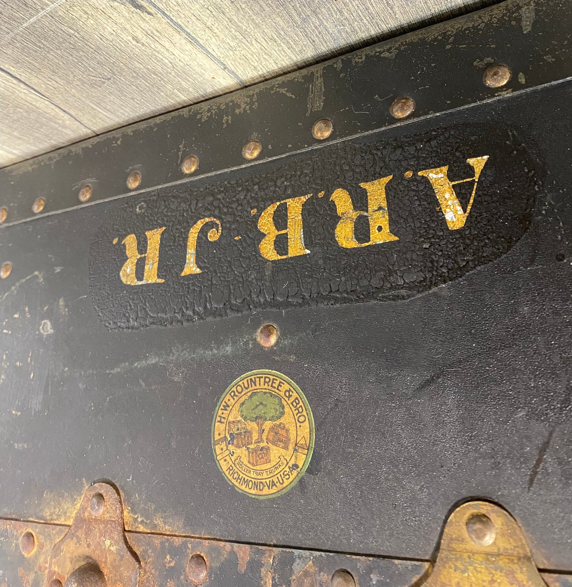 Antique 1880-1890's steamer trunk. Rare find with drawers and clothes hanger. Good condition with lots of antique charm. Great decor piece! Made by H W Mountree and Bro of Richmond, Virginia.