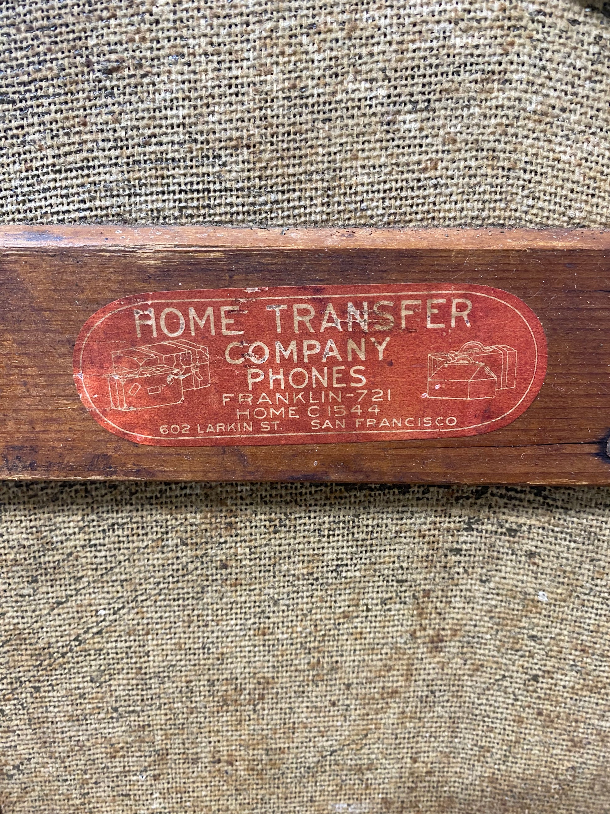Antique wood steamer trunk on wheels. Made in San Francisco, estimated early 1900’s. Really cool piece. Has canvas covering the wood and extra wood slats on the exterior. “Home Transfer Company Phones” label.