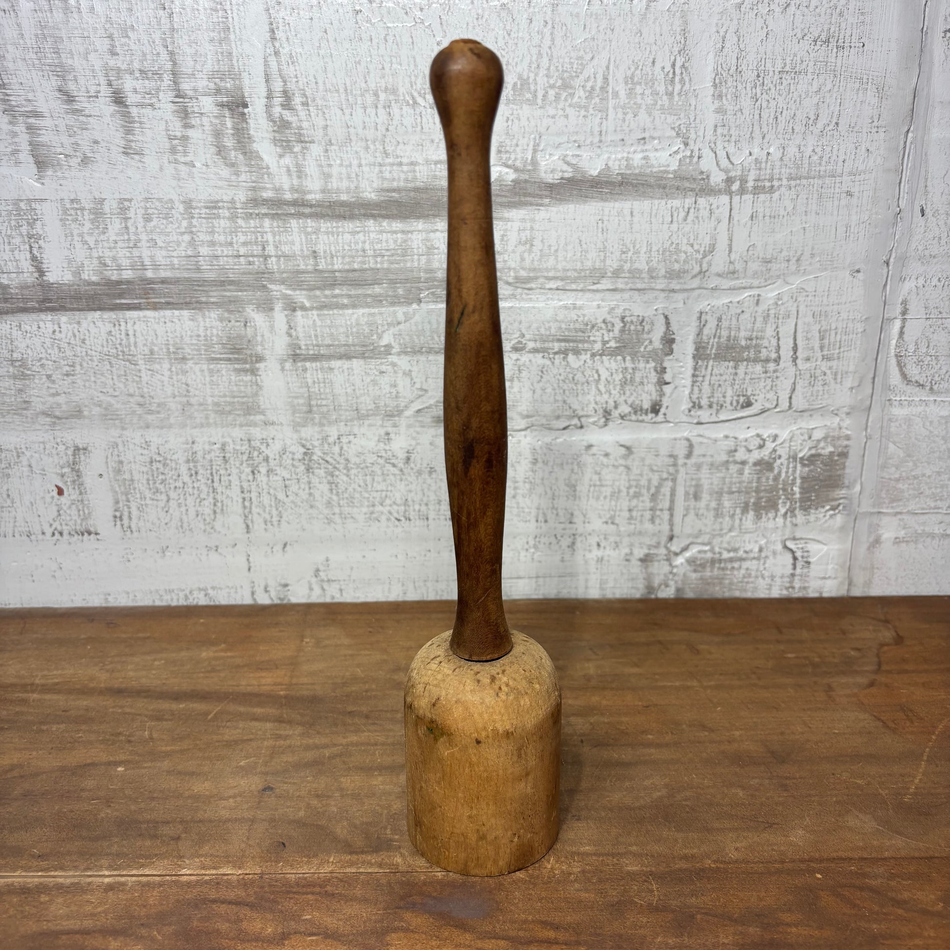 Antique solid wooden potato masher some basic wear, 11” tall, 2” wide