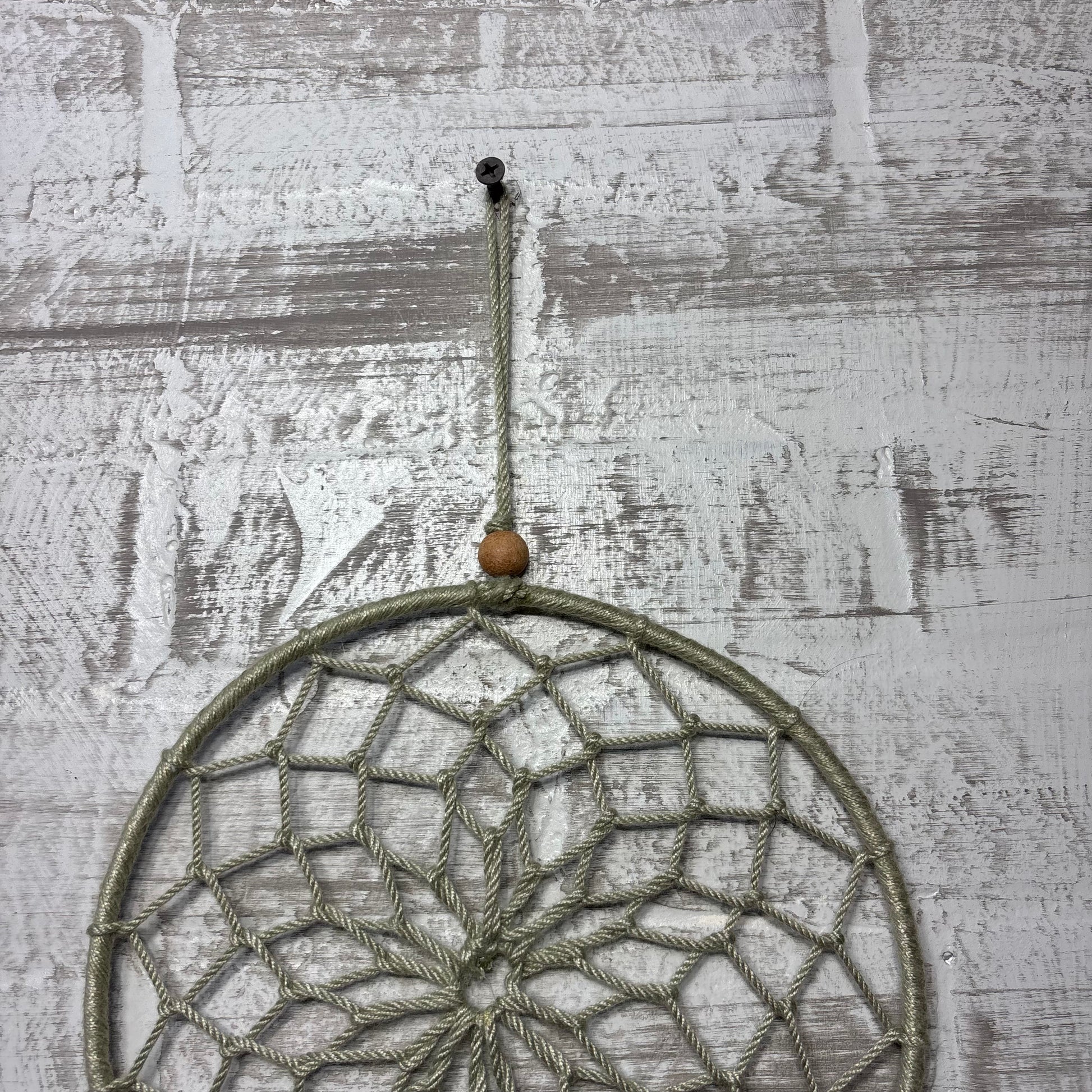 Sage green color unraveled boho style dreamcatcher, 20” long 8.5” diameter