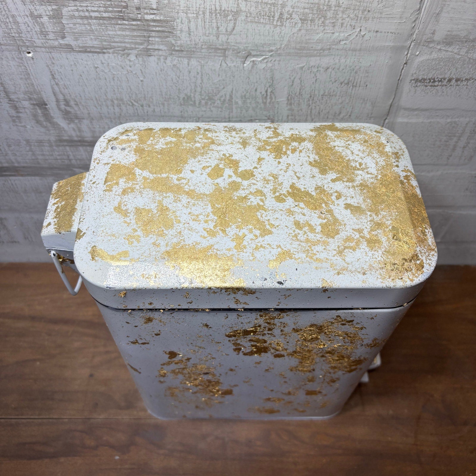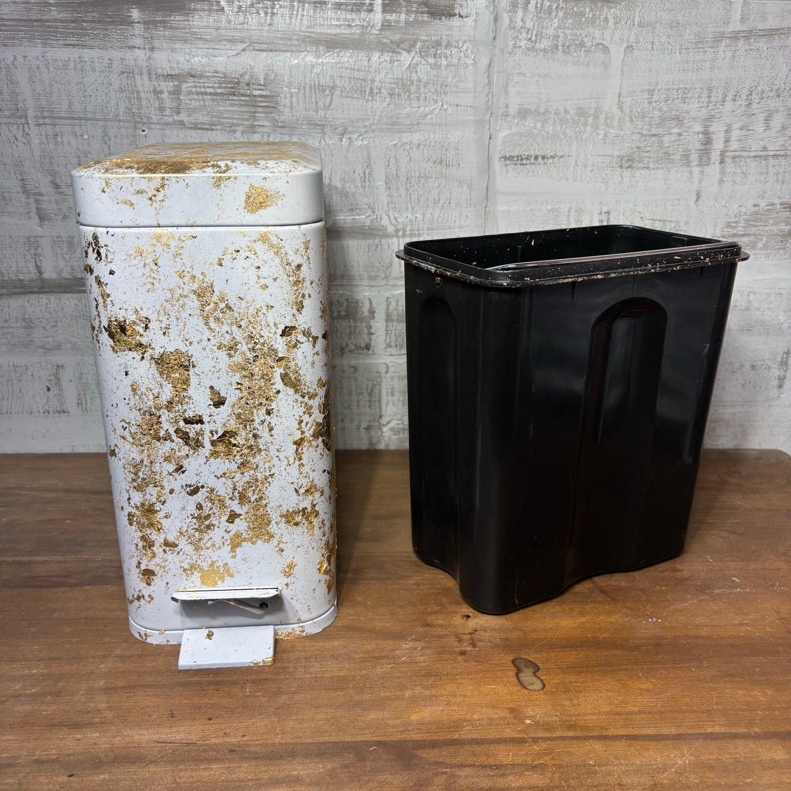 Custom gold flake & white small trash can, removable insert to make it easy to transport, 12” tall, 5” wide, 8” long