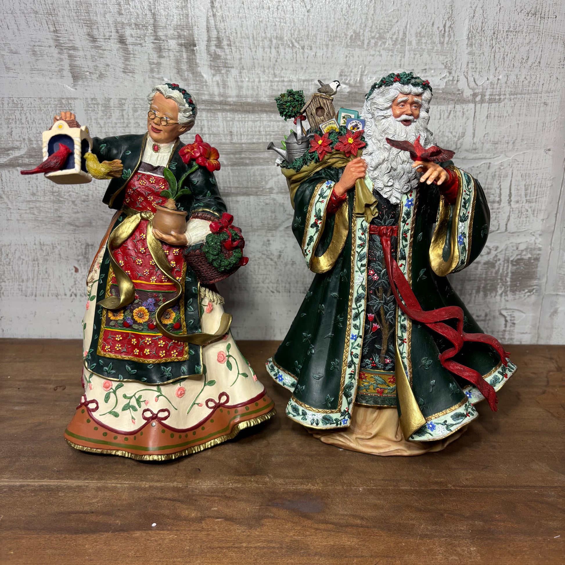 Resin made by Lena Liu/ Danbury Mint Christmas collection, both in great condition Natures Santa and Mrs.Claus beautiful detailing, both 9.5” tall, 7” wide