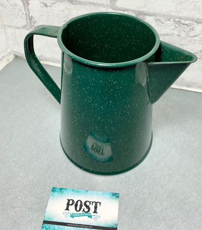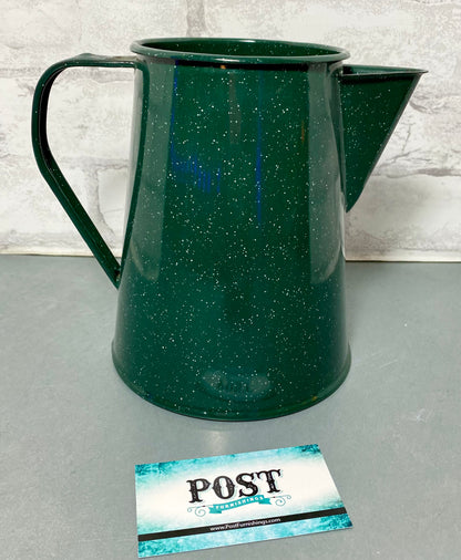 This vintage-inspired green enamelware coffee pot is the perfect addition to any kitchen. Its classic design and durable construction make it both functional and stylish.