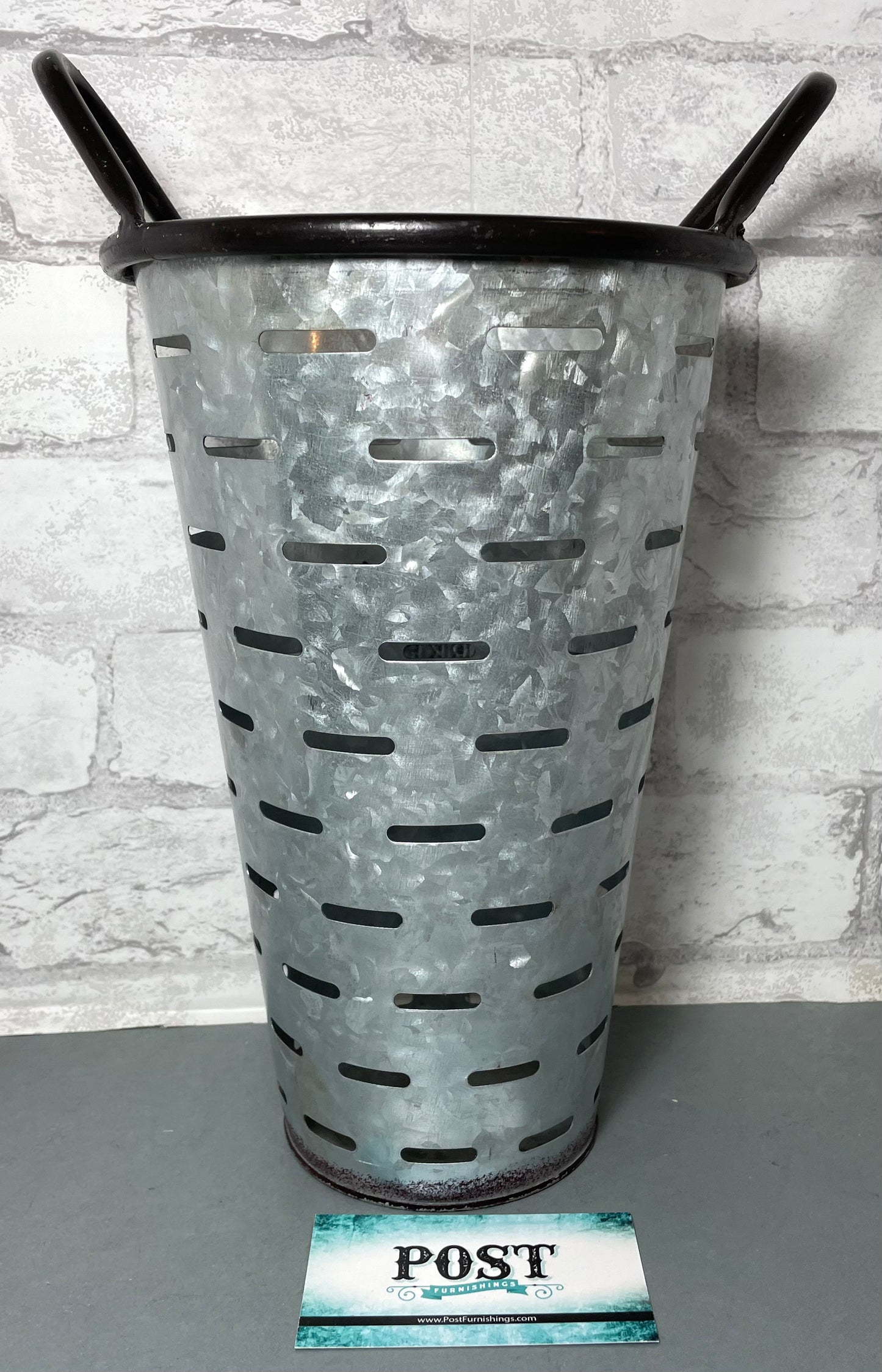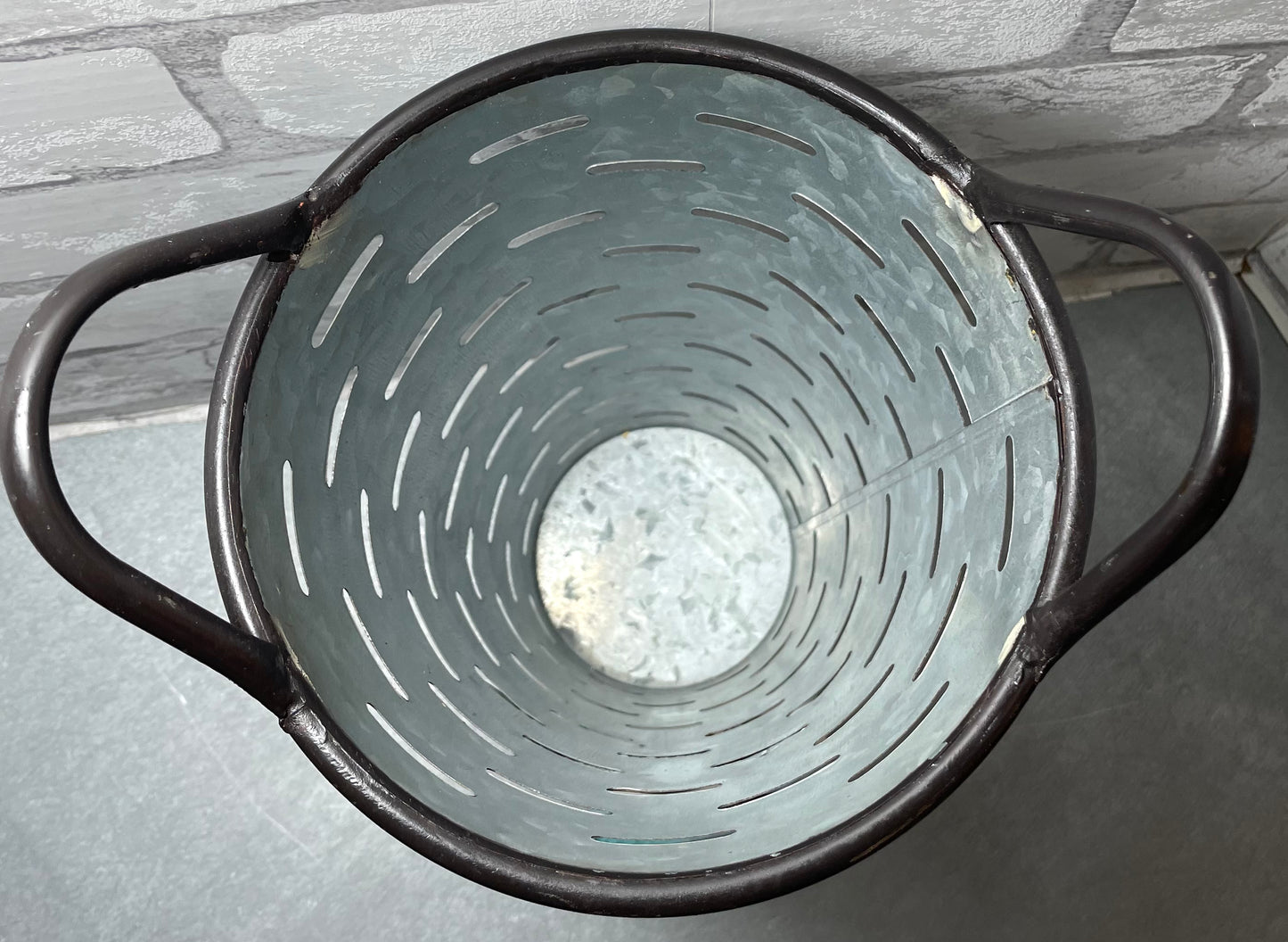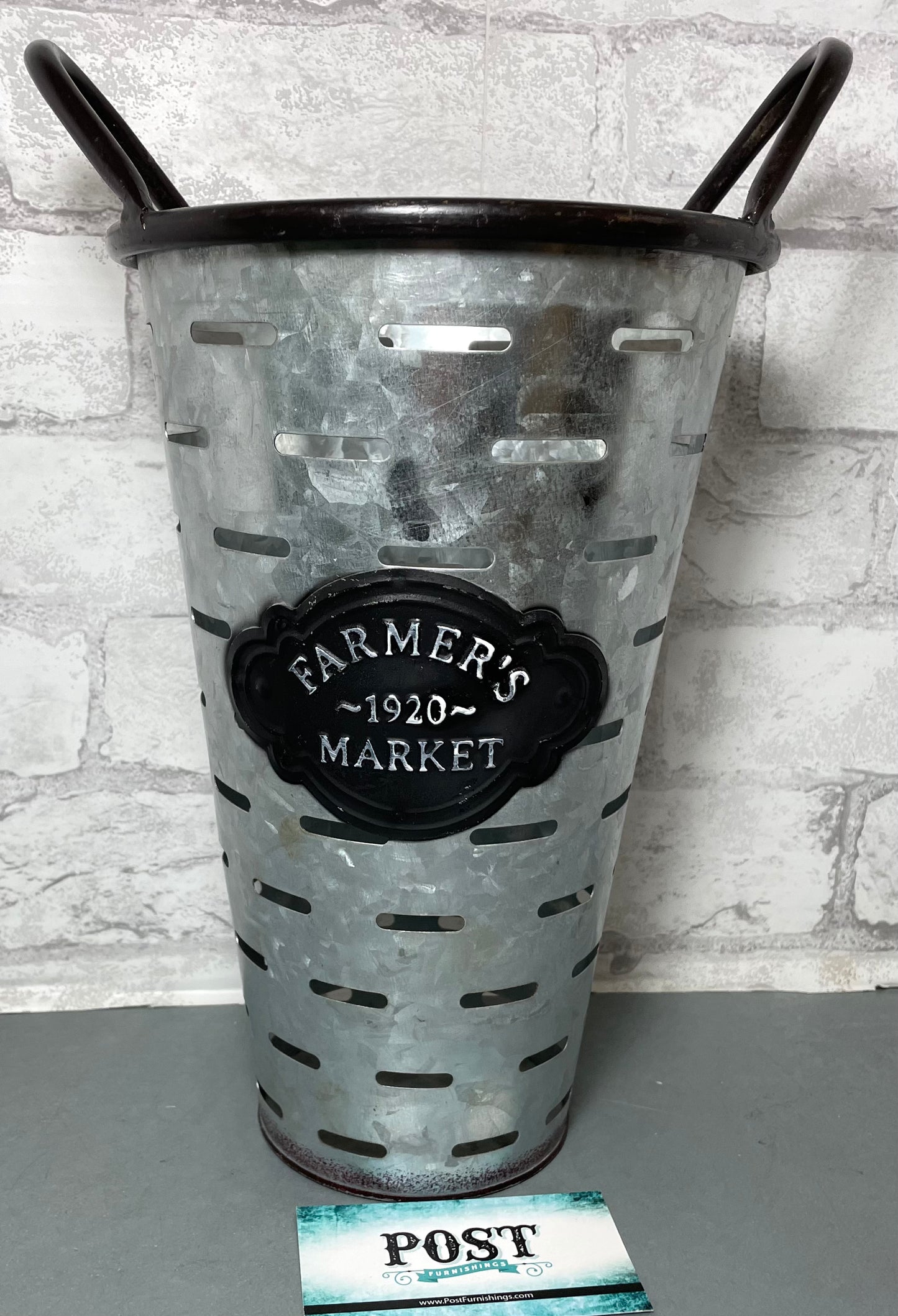 This tall metal basket is a charming and rustic piece, evoking the feeling of a bygone era. The "farmers market 1920" inscription adds to its rustic charm, making it a great conversation starter or decorative piece.