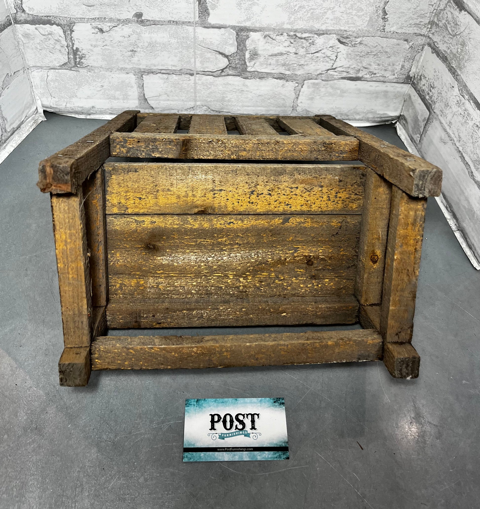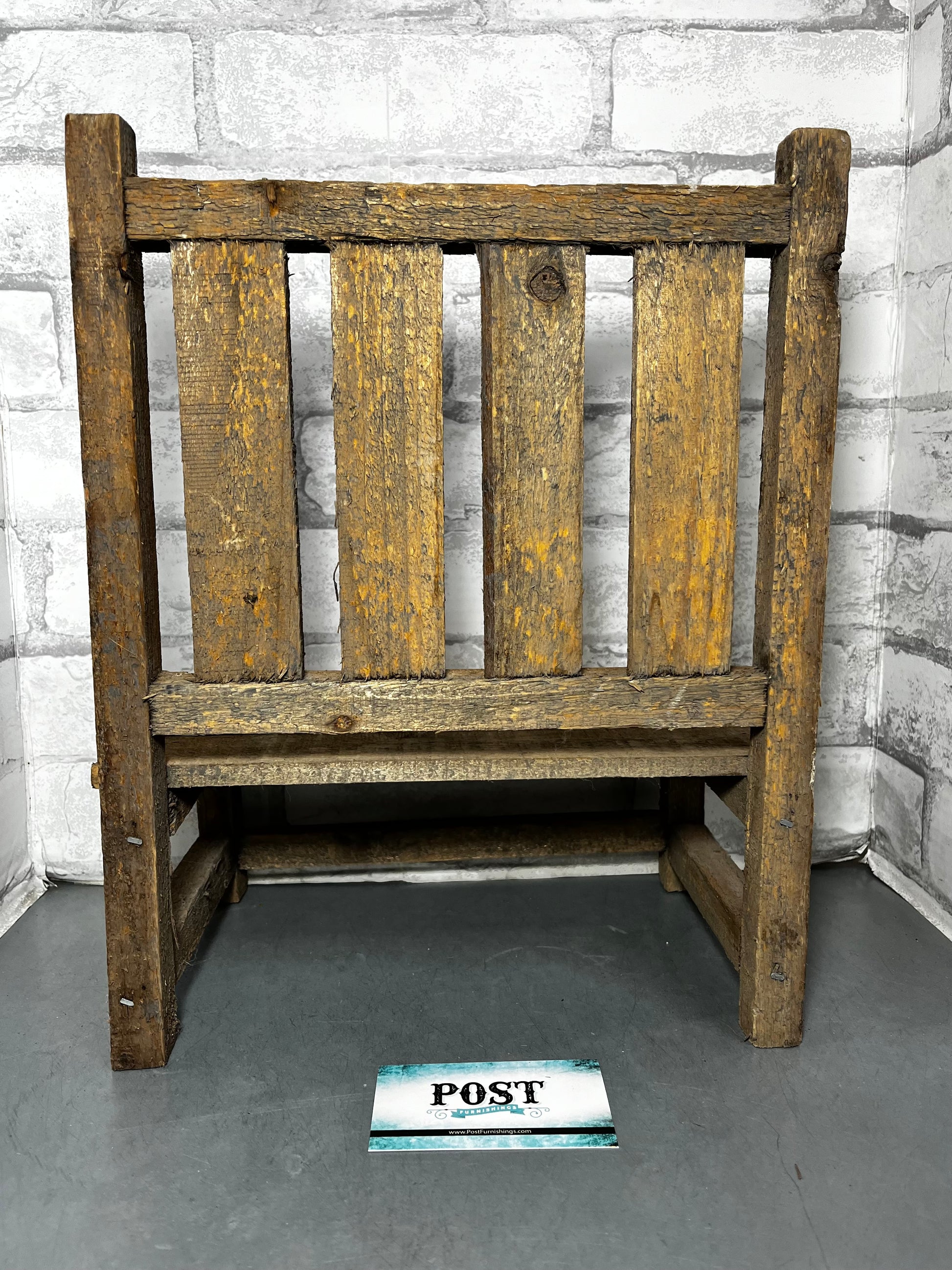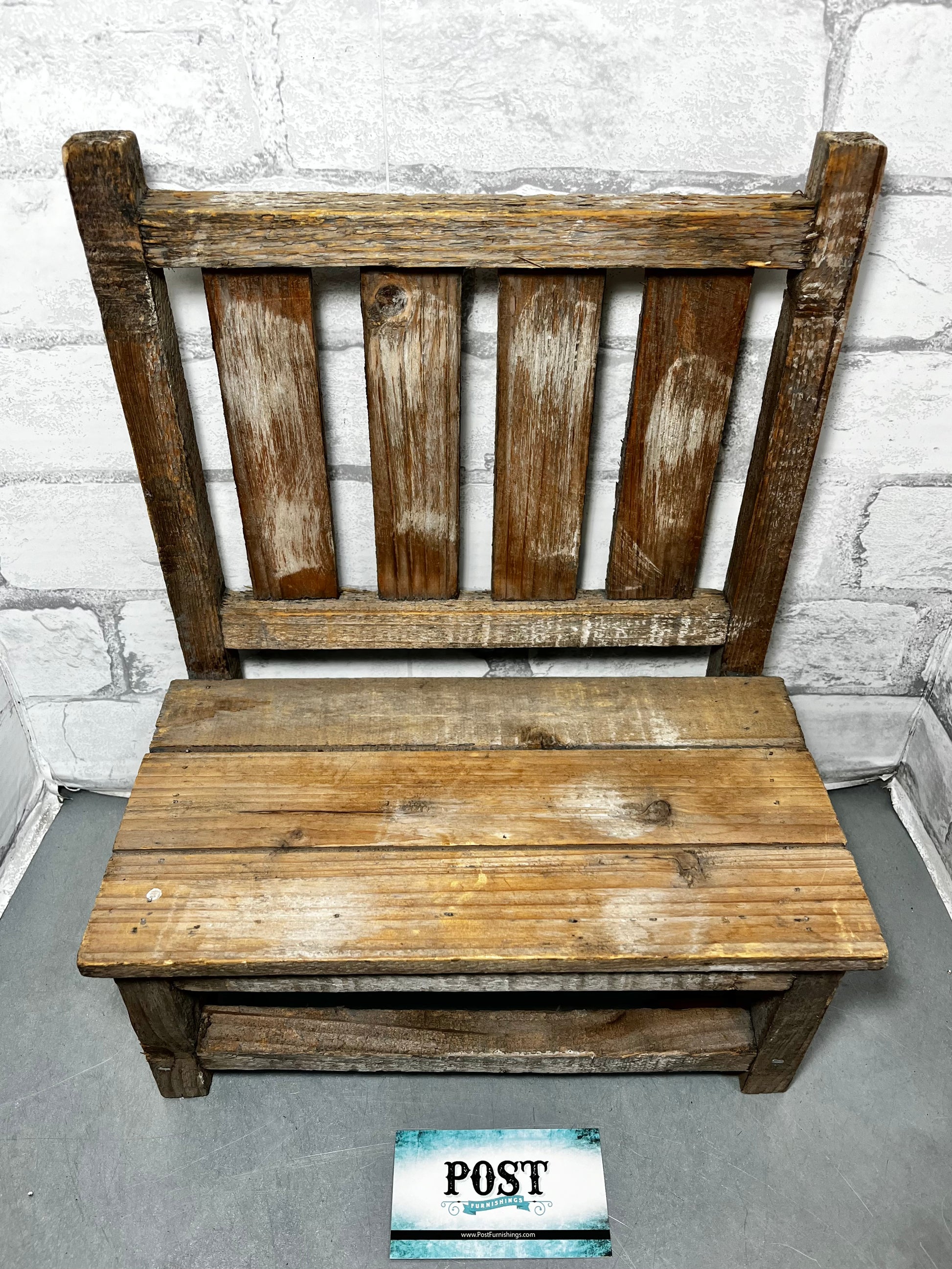 Farmhouse rustic mini bench, made of solid wood. Decor use only. Textured weathered surface. 12” wide, 7” deep, 14” long.