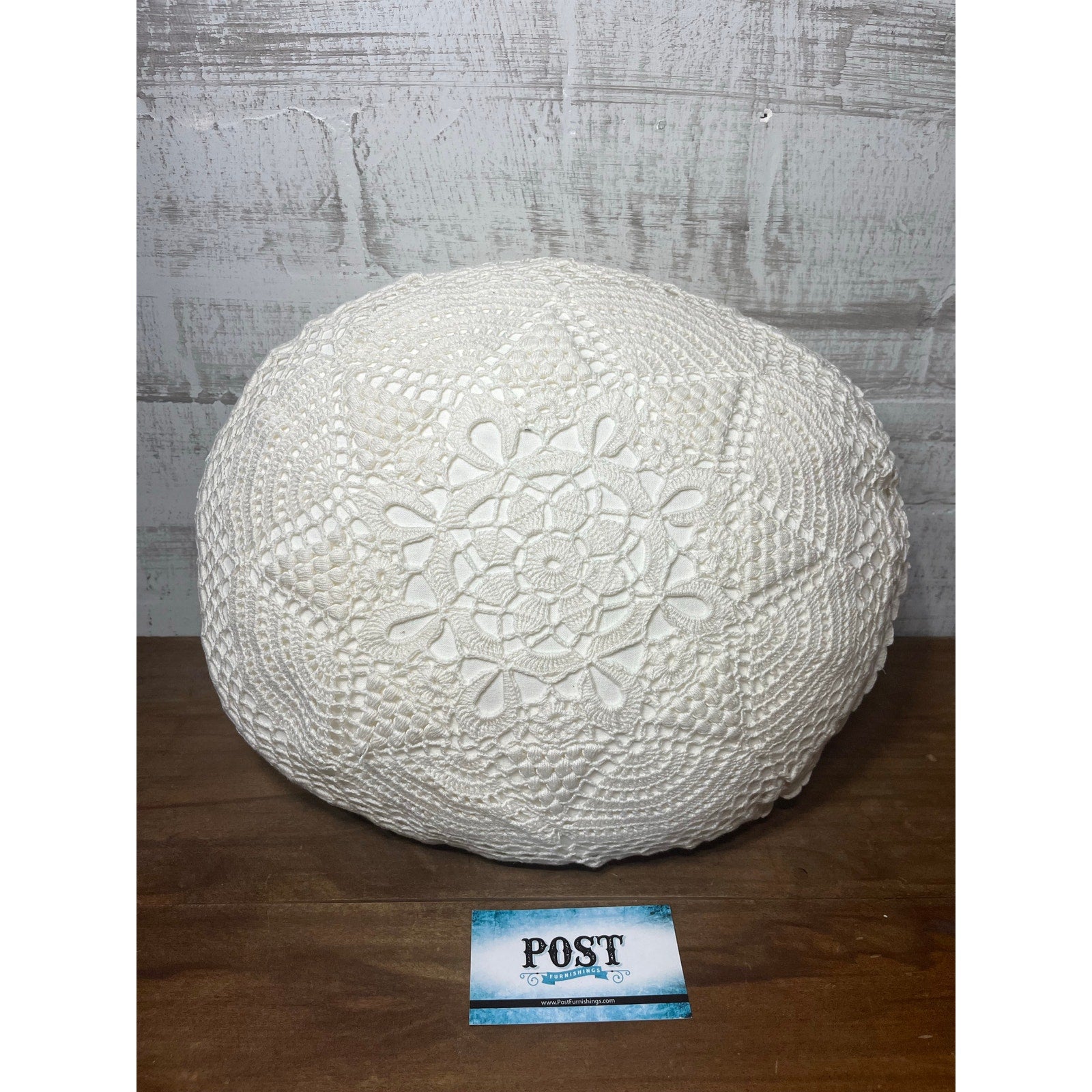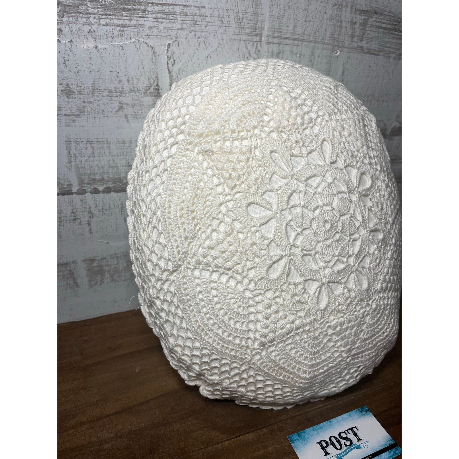 Oval shaped handmade crochet small pillow, lace material, mandala design, it is 12” long